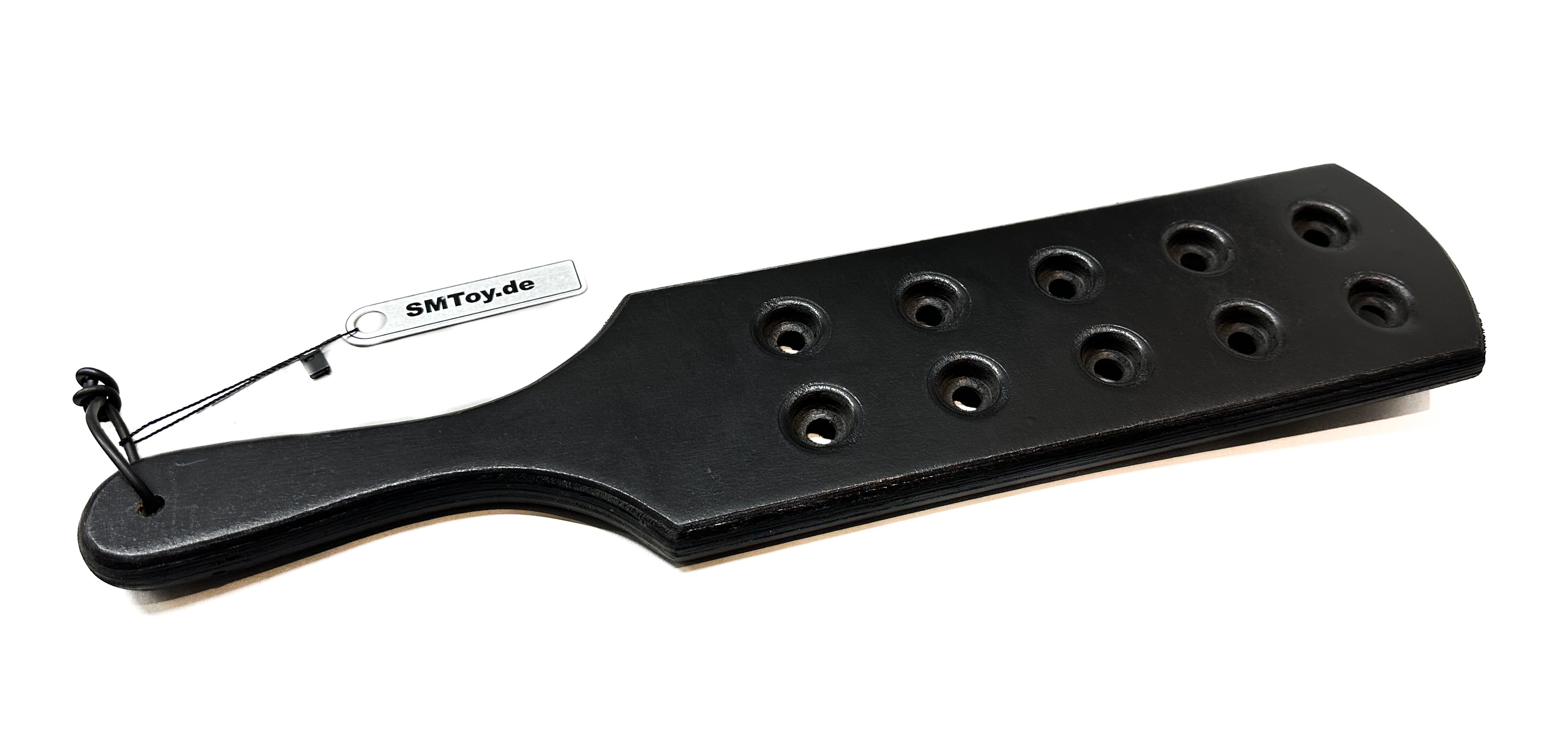 Paddle aus schwarz lackiertem, leicht angerautem Holz (Multiplex)