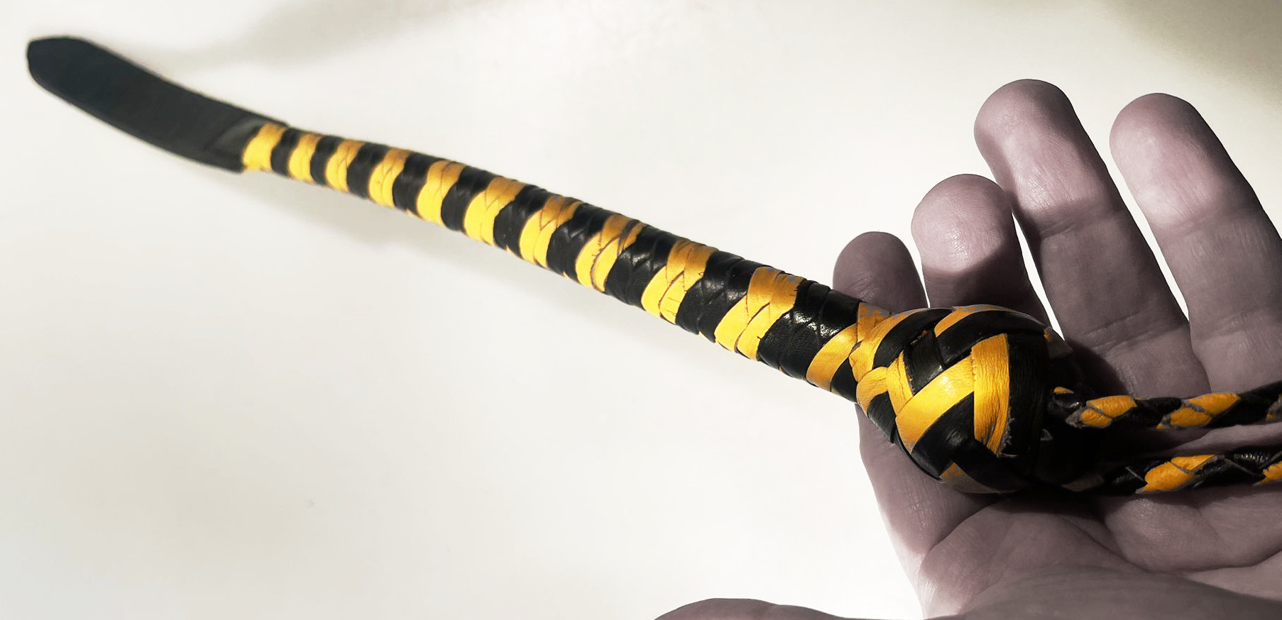 Produktinformationen "Kurzer Kantschu - Hochwertige Lederpeitsche mit Klatsche 47cm Black-Yellow"