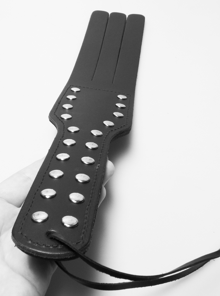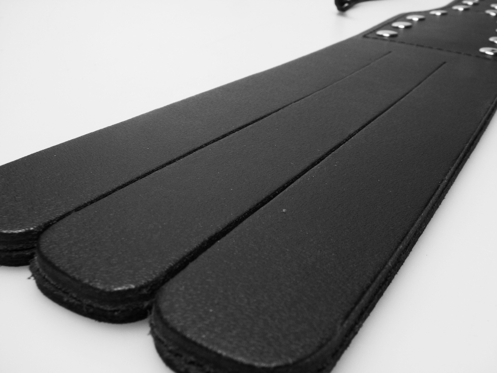Sehr schönes effektvolles Lederpaddle; jeweils drei doppelte (=sechs) Zungen.
