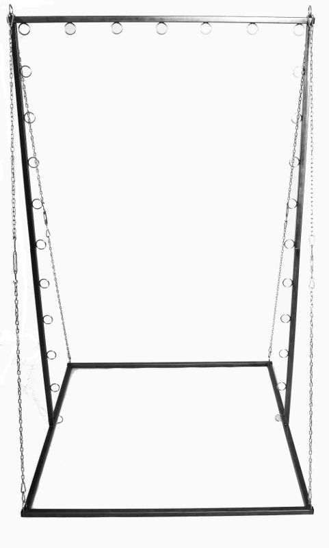 Das obere Rahmenrohr ist so ausgelegt das es auch höhere Belastungen ohne weiteres standhält. Die Abspannungen mit Ketten geben dem Rahmen zusätzliche Stabilität und dienen gleichzeitig als Verschlusstechnik. Es werden also keine zusätzlichen Schrauben oder andere Teile benötigt.