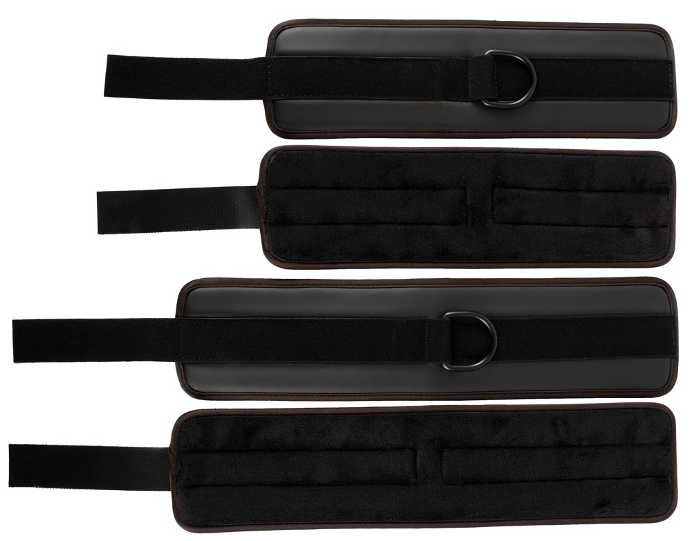 Die bequemen Hand- und Fußfesselmanschetten in stilechter Leder-Optik (aber durch und durch vegan!) sind mit praktischen Klettverschlüssen ausgestattet und somit für SIE oder IHN passend verstellbar.