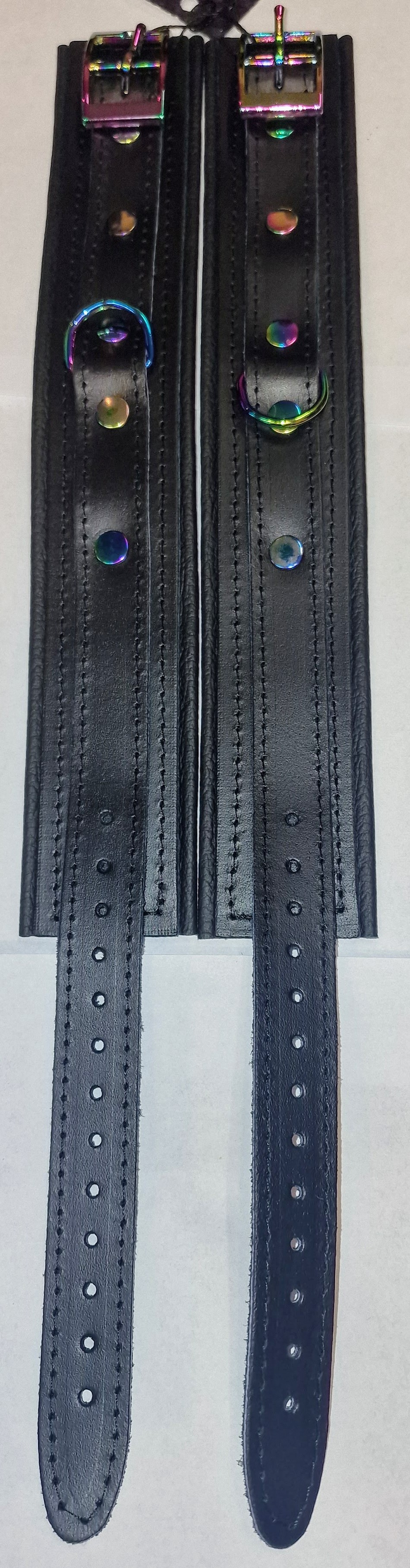 Diese einzigartige Serie besticht durch faszinierende Regenbogen-/Holo-Metallelemente, die jedes Detail zum Highlight machen. Die Fesseln sind aus besonders weichem Leder gefertigt, mit umgenähten Kanten für höchsten Tragekomfort und eine edle Optik.