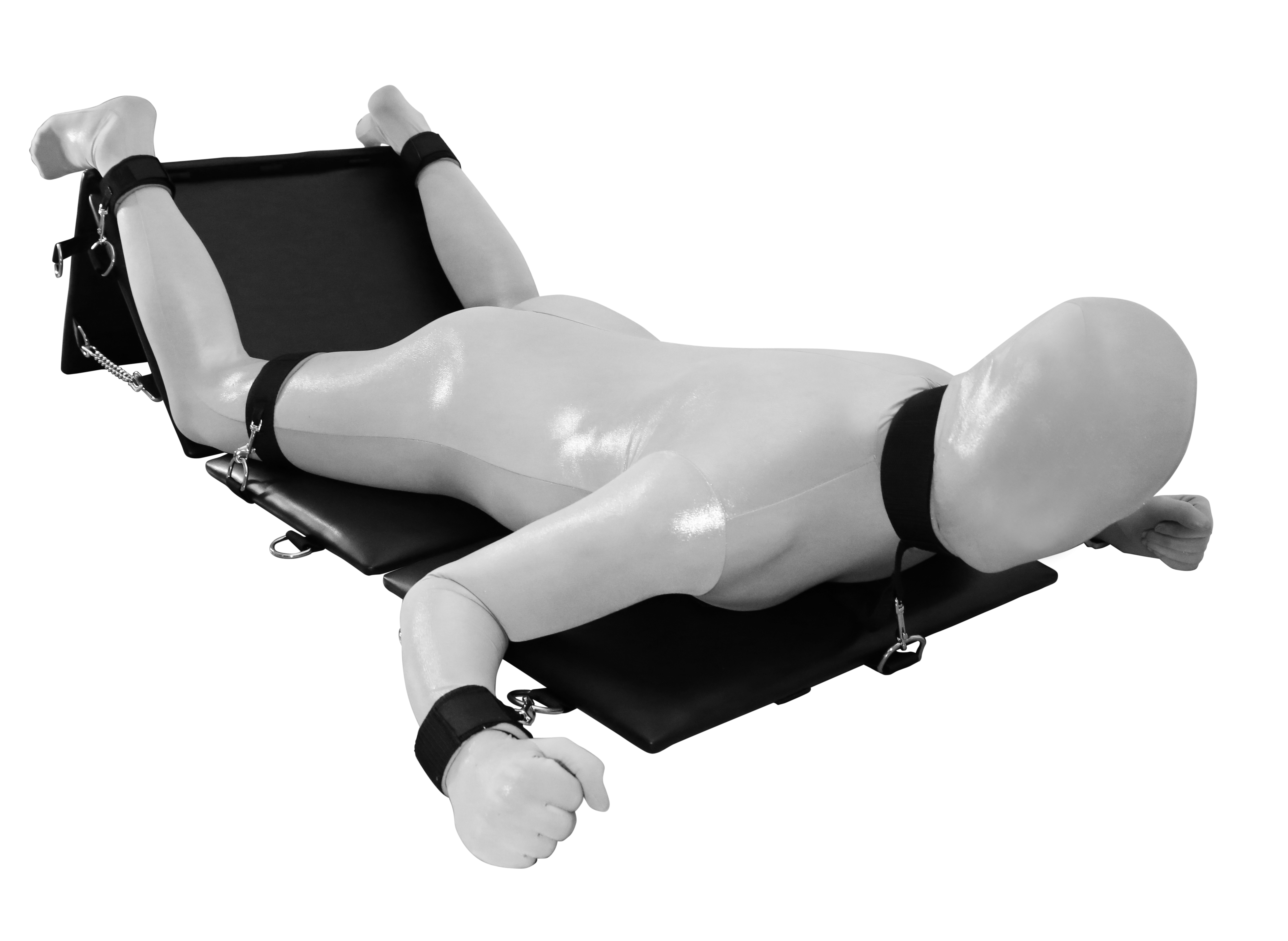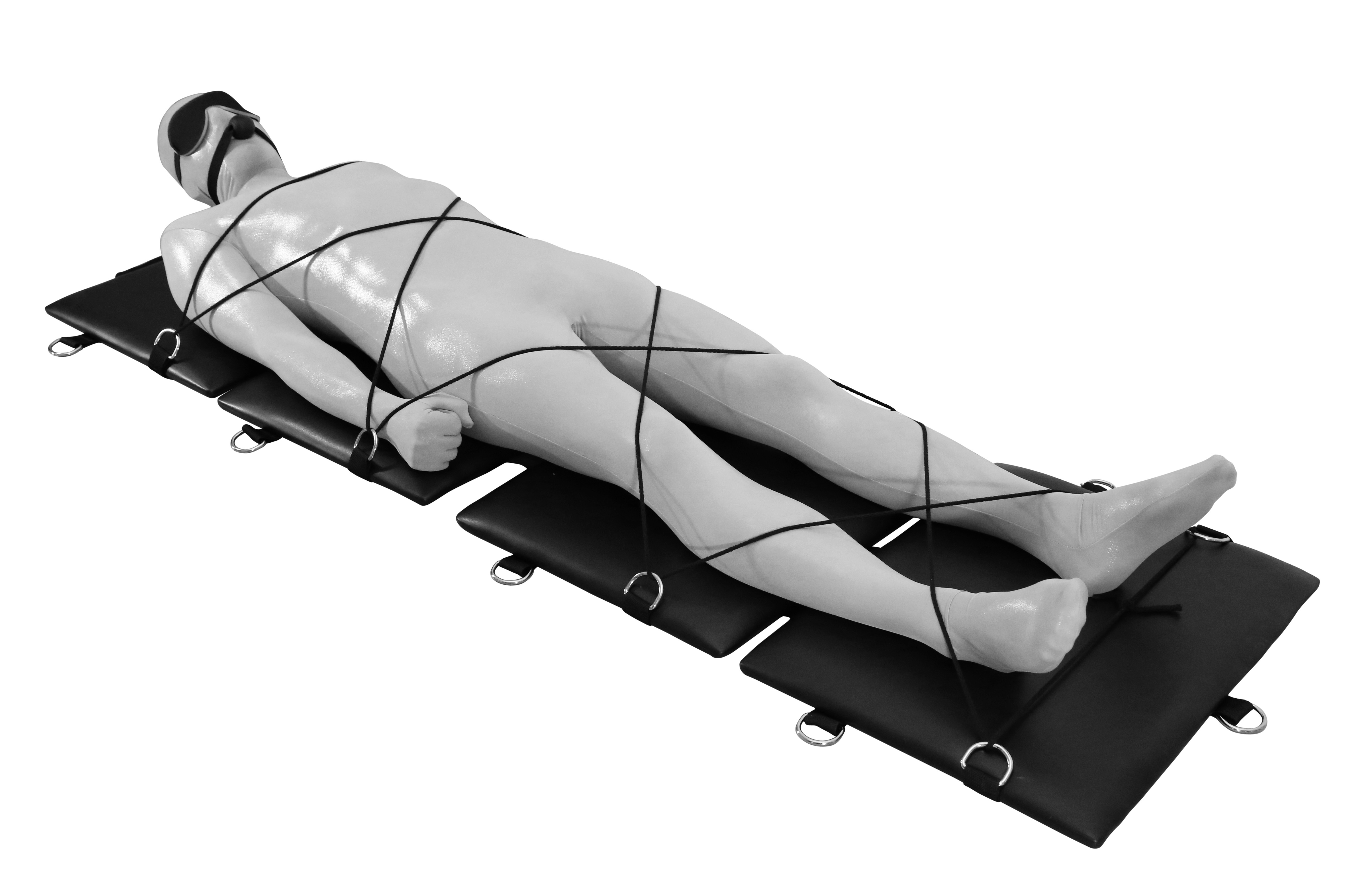 mit angebrachten D-Ringen (14 St) die für die diversen Fesseln mit Karabinern dienen (Gesamtgewicht ca. 11 kg)