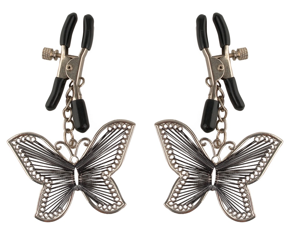 Diese Nippelklammern sind für besonders edle Fetischspielchen gemacht! Man genießt den süßen Schmerz an den Nippeln oder auch nur leichten Druck, denn die Klammern selbst sind leicht zu verstellen. Die Schmuckelemente geben dem Ensemble einen Touch Unschuldigkeit.