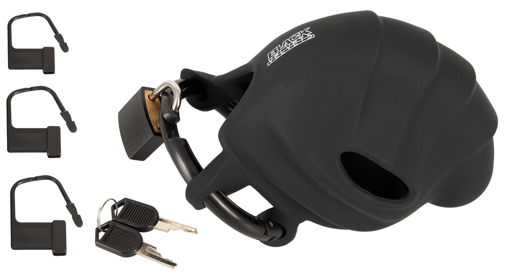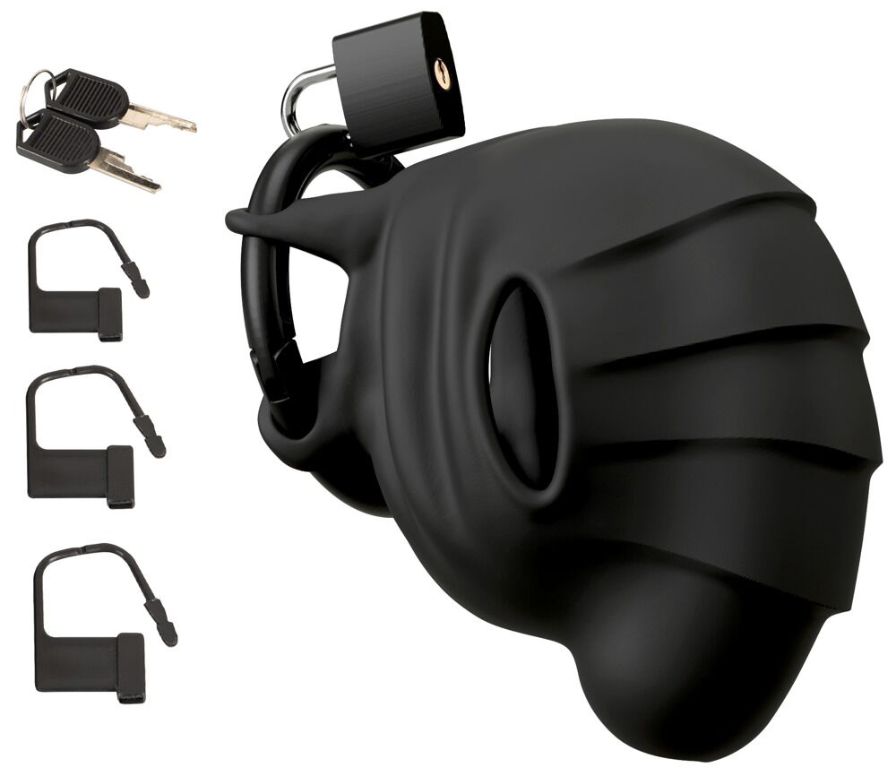 Keuschheitskäfig in schwarz, abschliessbar und vier Ringe!