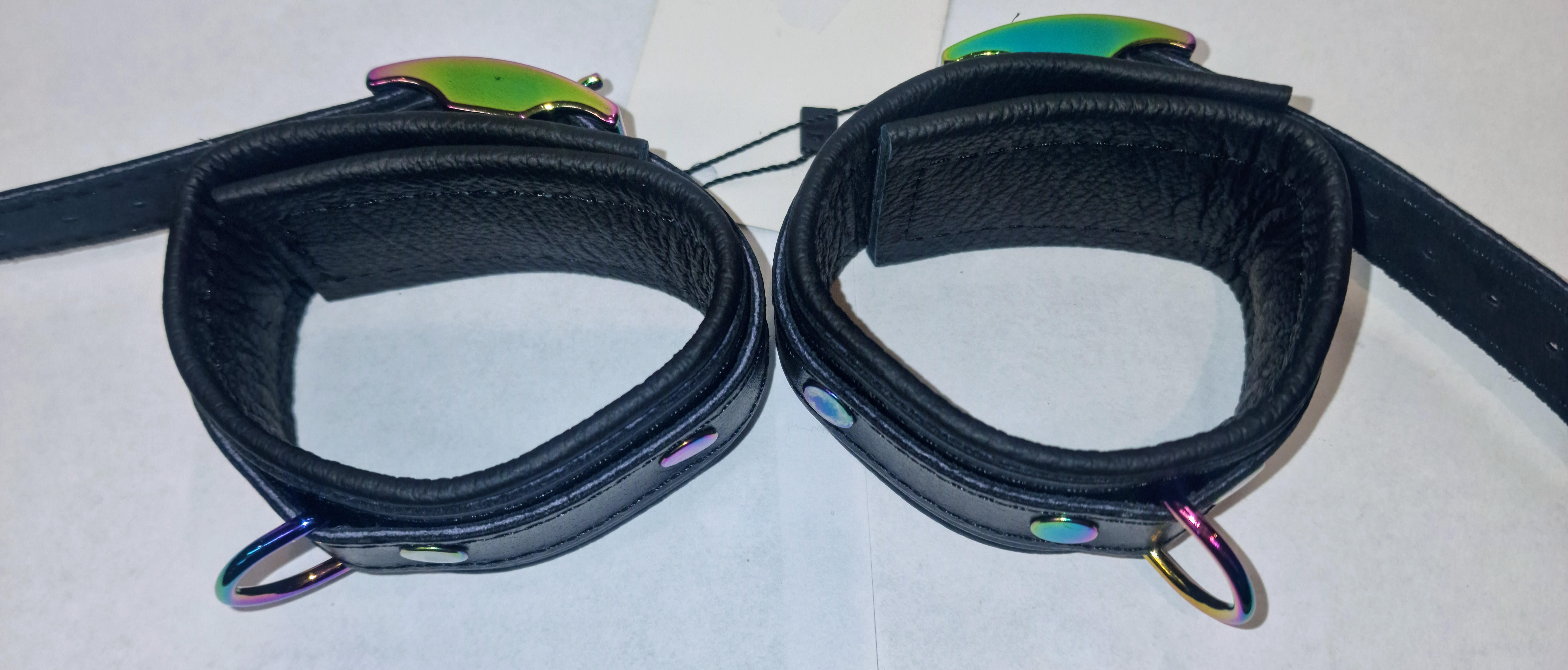 High-Quality Fußfesseln – Regenbogen/Holo-Metallelemente