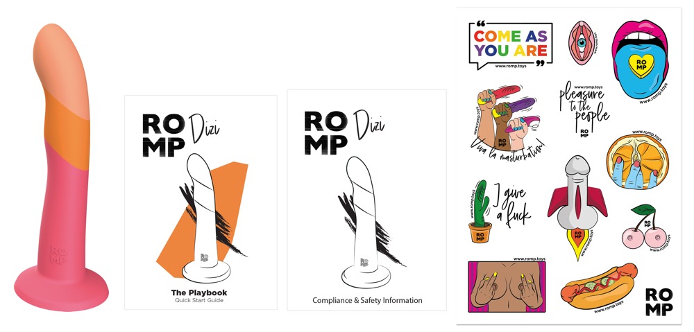 Aufregend gewellter Dildo Dizi von ROMP in stylischer Farbgebung. Mit starkem Saugfuß, der auf jeder glatten Oberfläche fest und sicher haftet für ein freihändiges Vergnügen. Somit ist der Dildo auch kompatibel mit Strap-ons und Harnessen. Dazu ideal gebogen, damit G-Punkt bzw. Prostata leicht erreicht und gezielt stimuliert werden können. Gefertigt aus seidig softem Silikon, das dem Dildo seine aufregende Steife und Härte gibt, ohne an Flexibilität zu verlieren. Im unteren Schaft hohl, damit ein Vibrobullet (nicht beiliegend) eingesetzt werden kann.