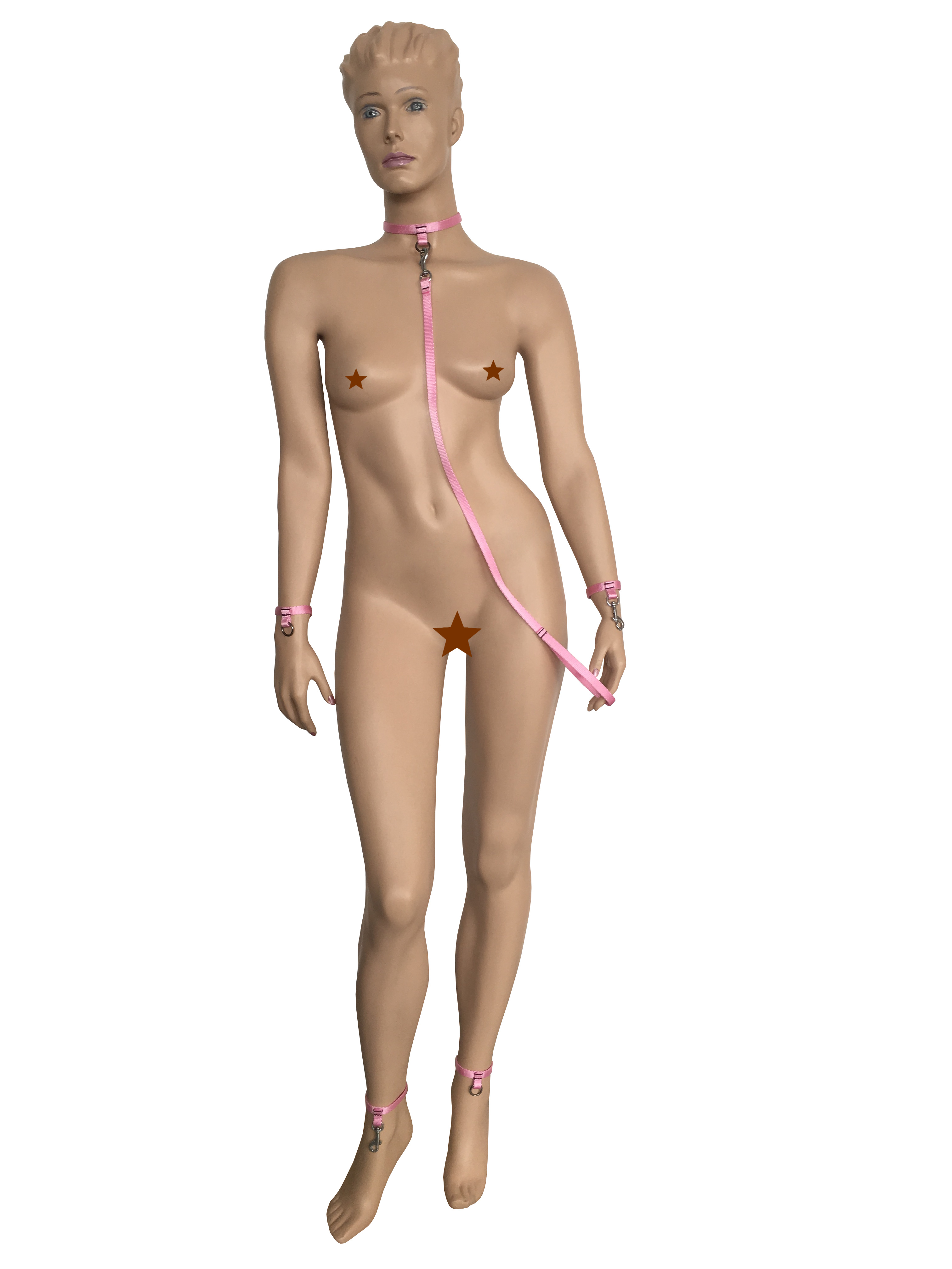 Set bestehend aus Halsband, Hand, Fußfesseln und Leine.