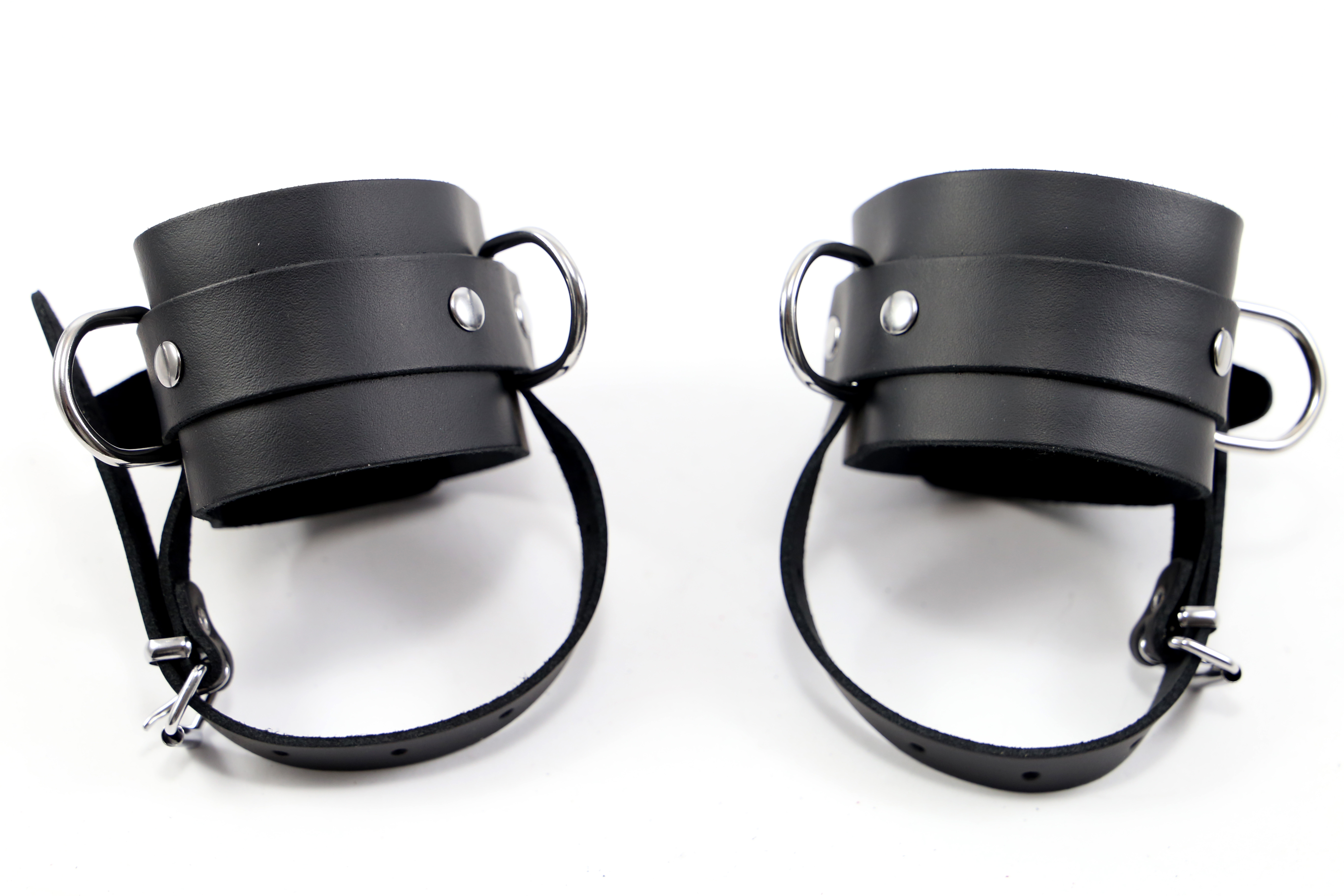 Leder Fesselset schwarz mit großen D-Ringen S-M