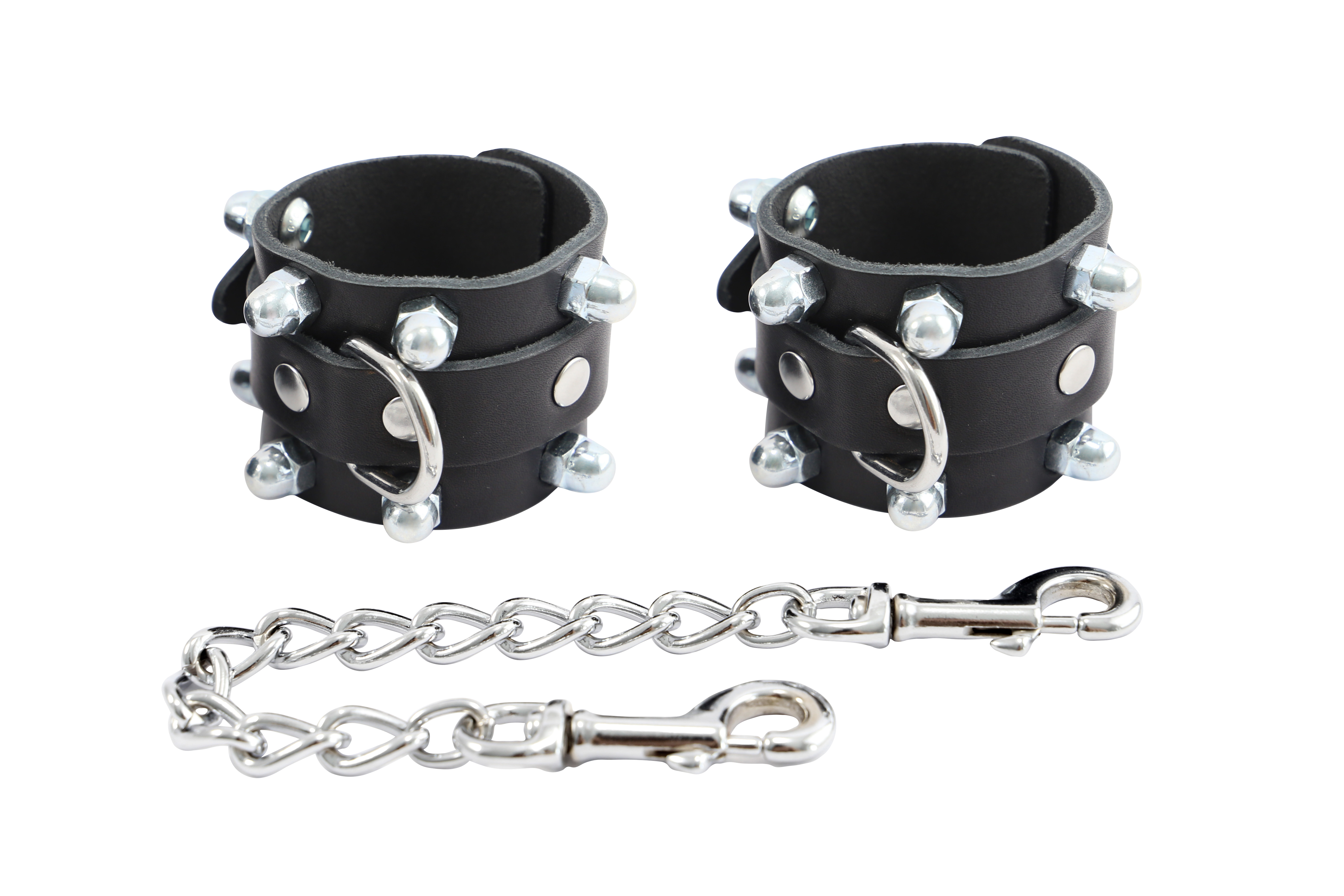 Leder Fesselset Schwarz mit dicker Kette und Karabinern