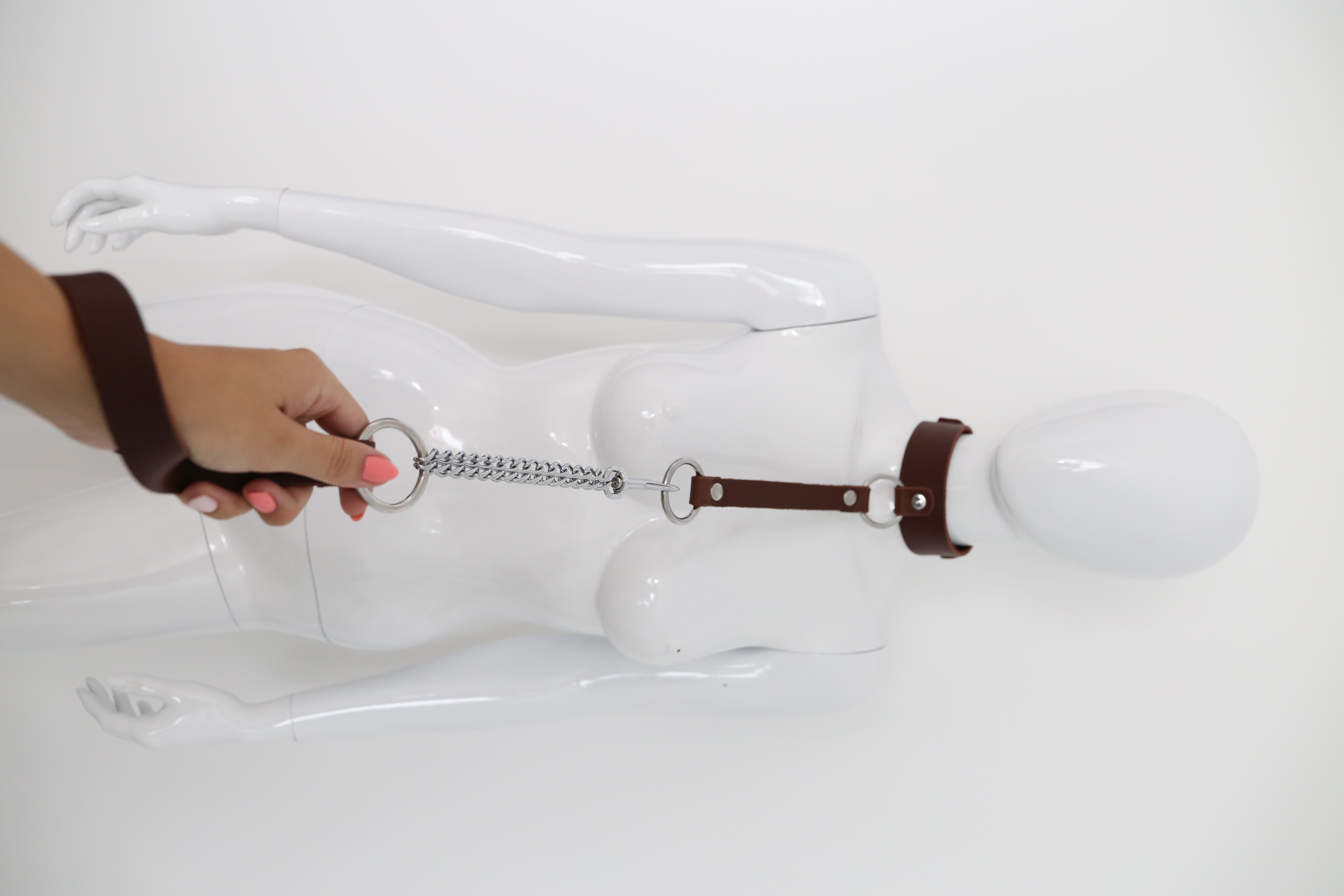 LEDER FESSELNDES - Hogtie 3-Straps Leder mit Nieten und Karabiner