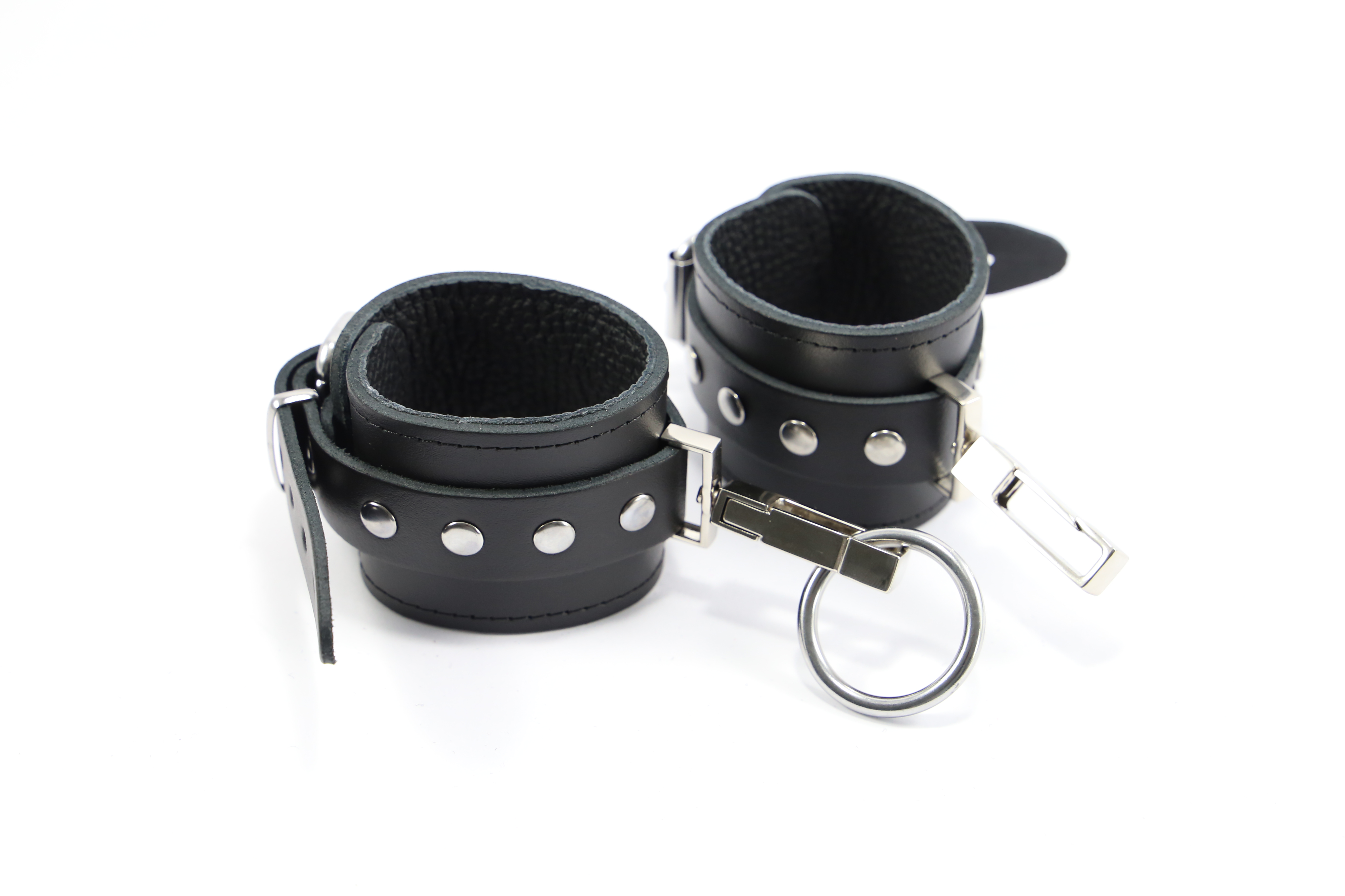 Leder Handfessel mit Doppelleder, neuem Karabiner und Verbindungs Ring.