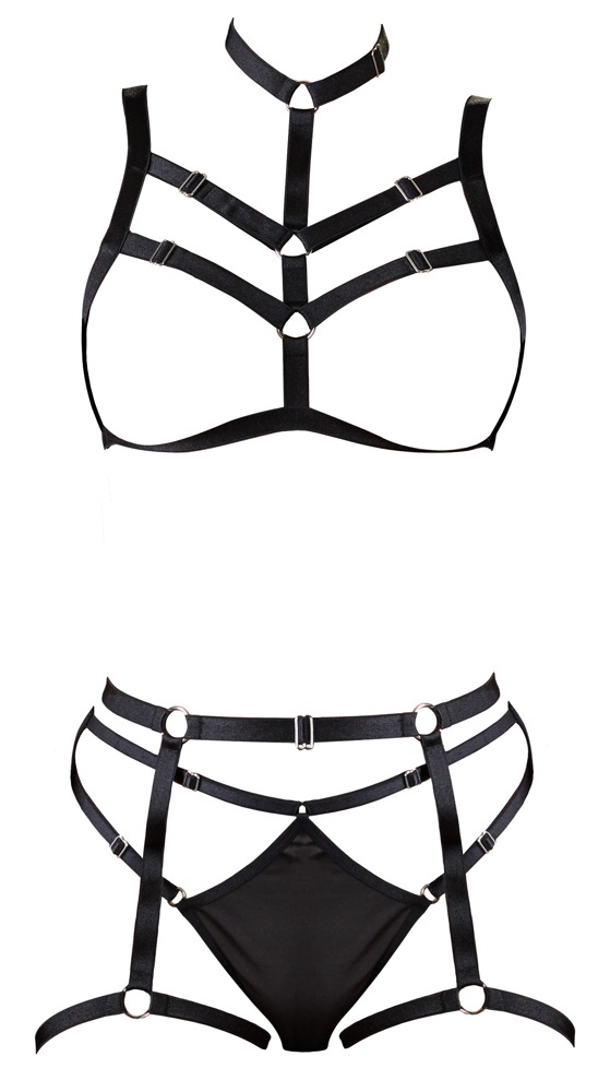 Dieses Harness-Set sieht elegant und verrucht aus und verströmt einen heißen Bondage-Vibe. Das Material ist mit Elasthan ausgestattet und hat mehrere verstellbare Schnallen für den idealen Tragekomfort.
