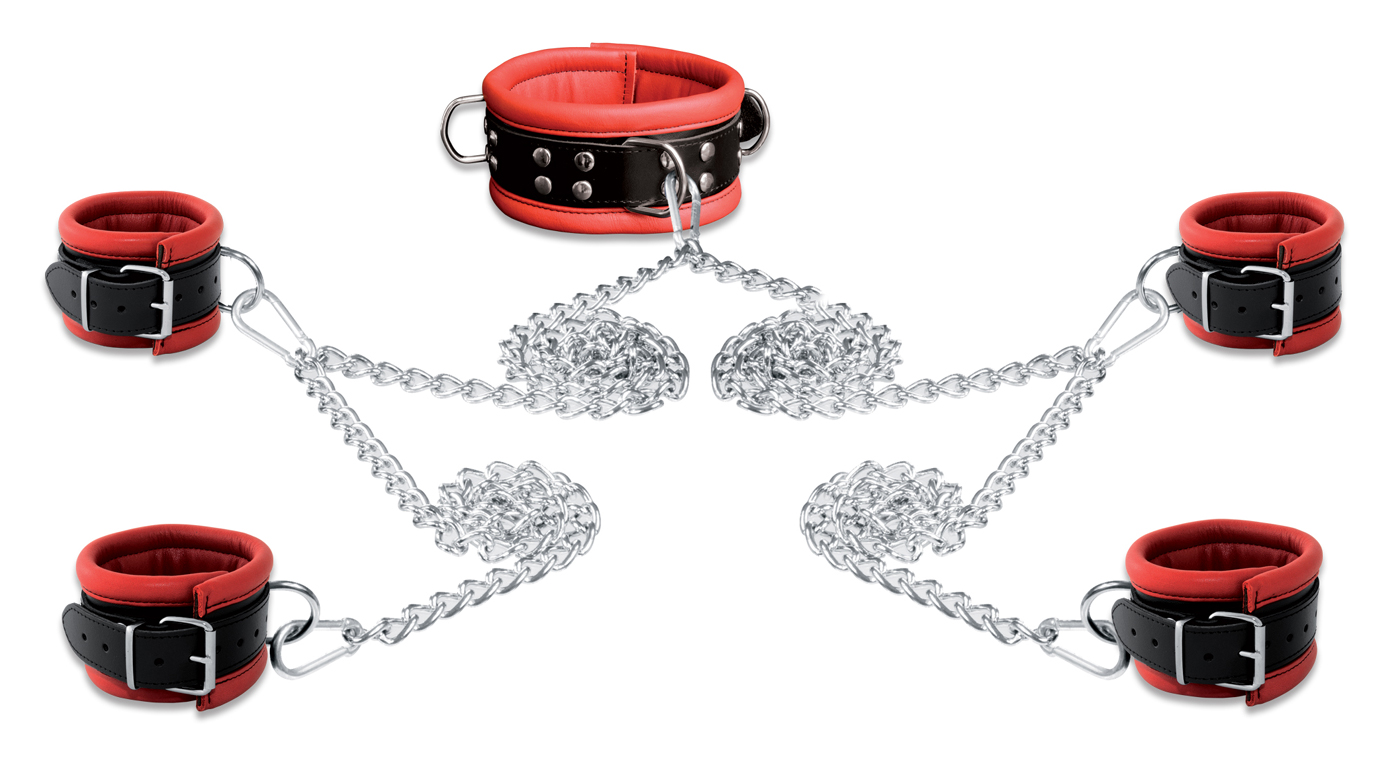 Leder Fesselset Schwarz mit dicker Kette und Karabinern