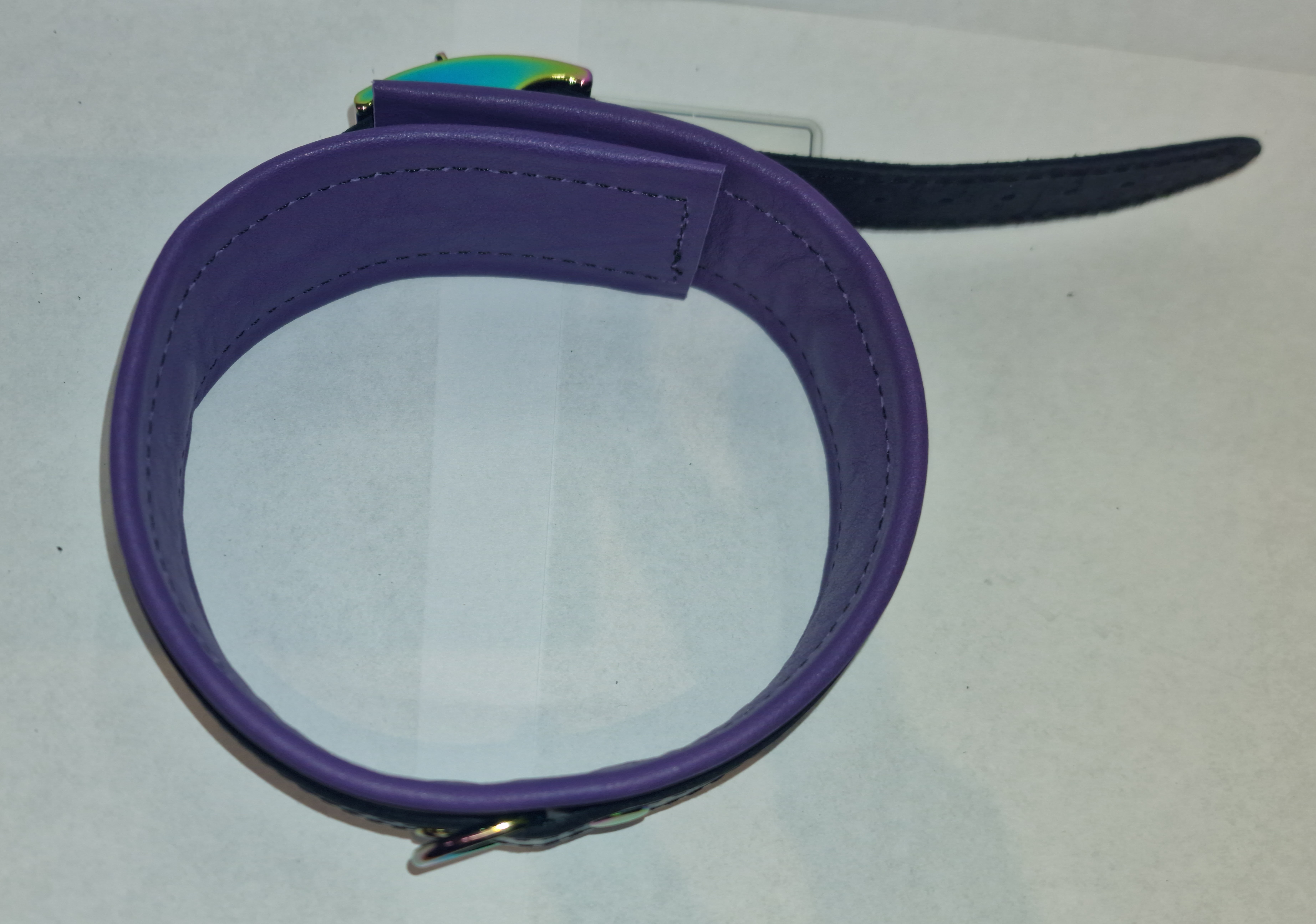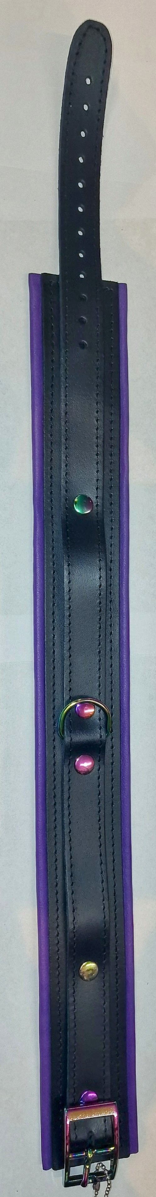 Die faszinierenden Regenbogen-/Holo-Metallelemente machen diese Halsfessel zu einem echten Blickfang. Wählen Sie Ihre Lieblingsfarbe aus einer edlen Palette: Schwarz, Lila, Rot oder Blau – für genau den Look, der zu Ihnen passt.