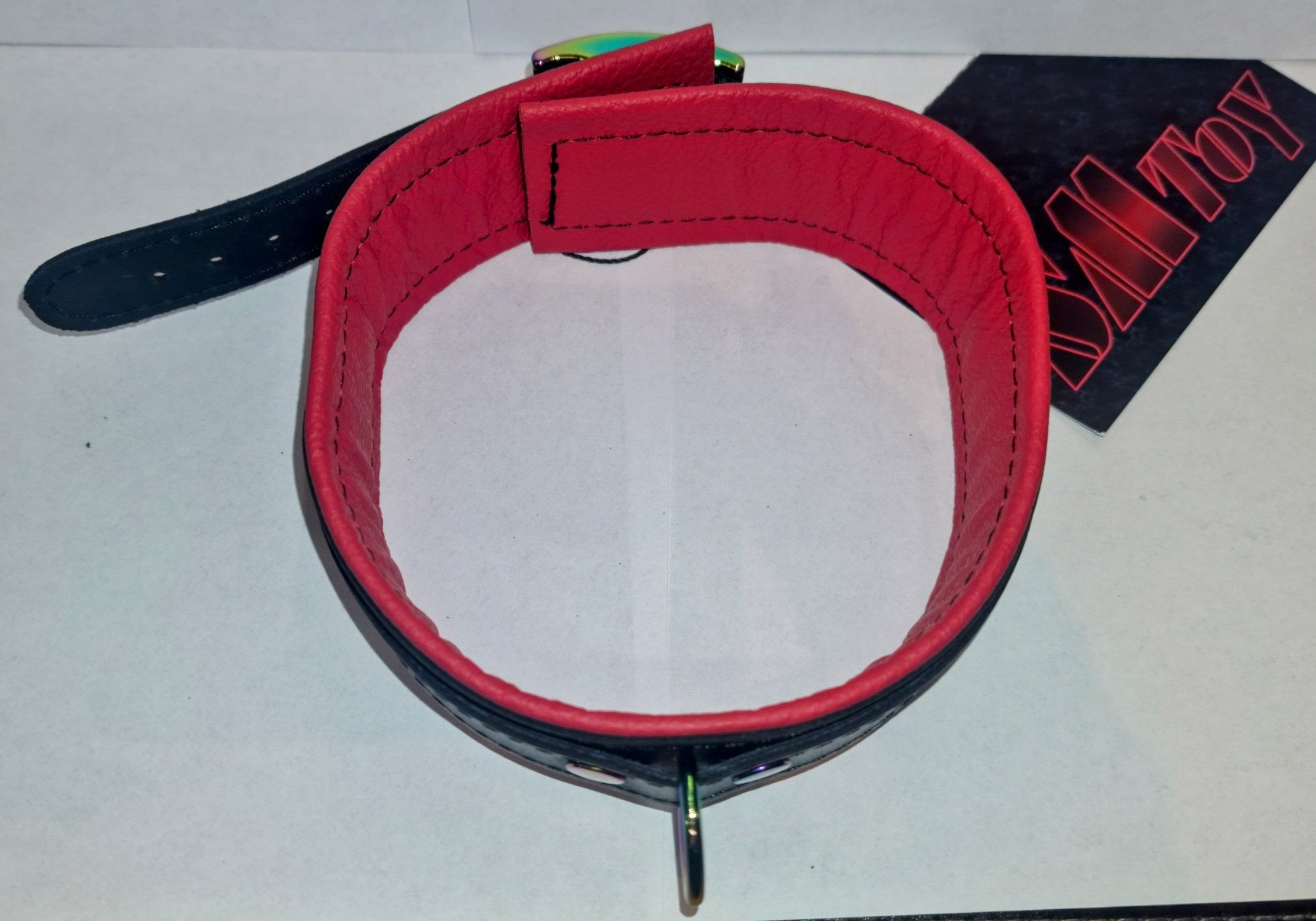 High-Quality Halsfessel – Regenbogen/Holo-Metallelemente