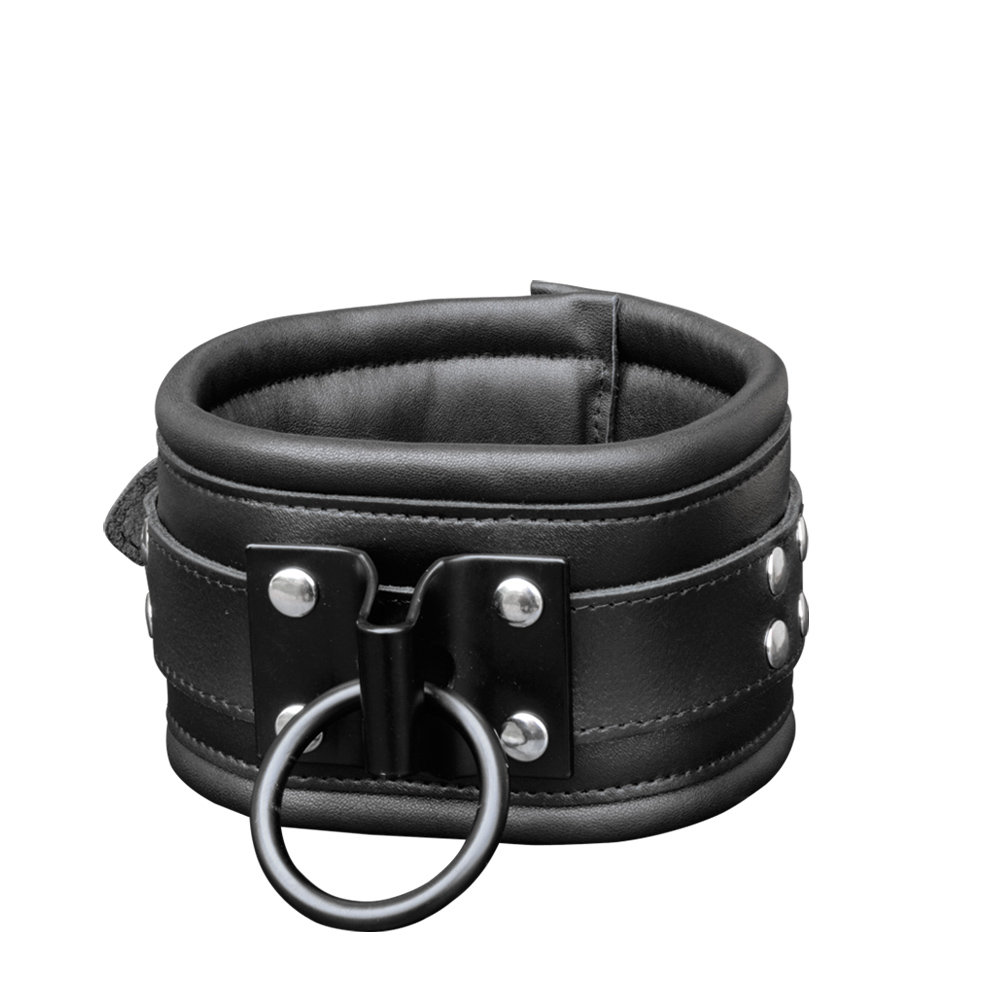 Leder Halsfessel schwarz mit großen D-Ringen L-XL