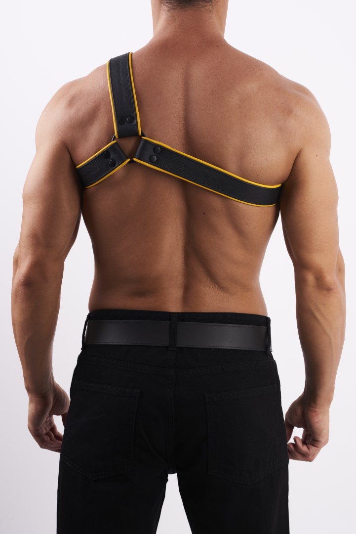 HighQuality - Soft Leder Brust Harness Schwarz/Gelb