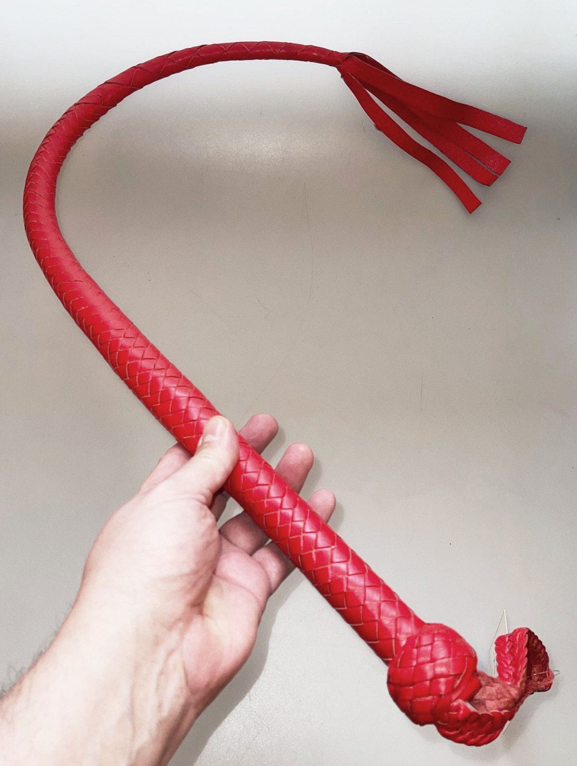 Leder Peitsche - D-Ring rot und soft gross