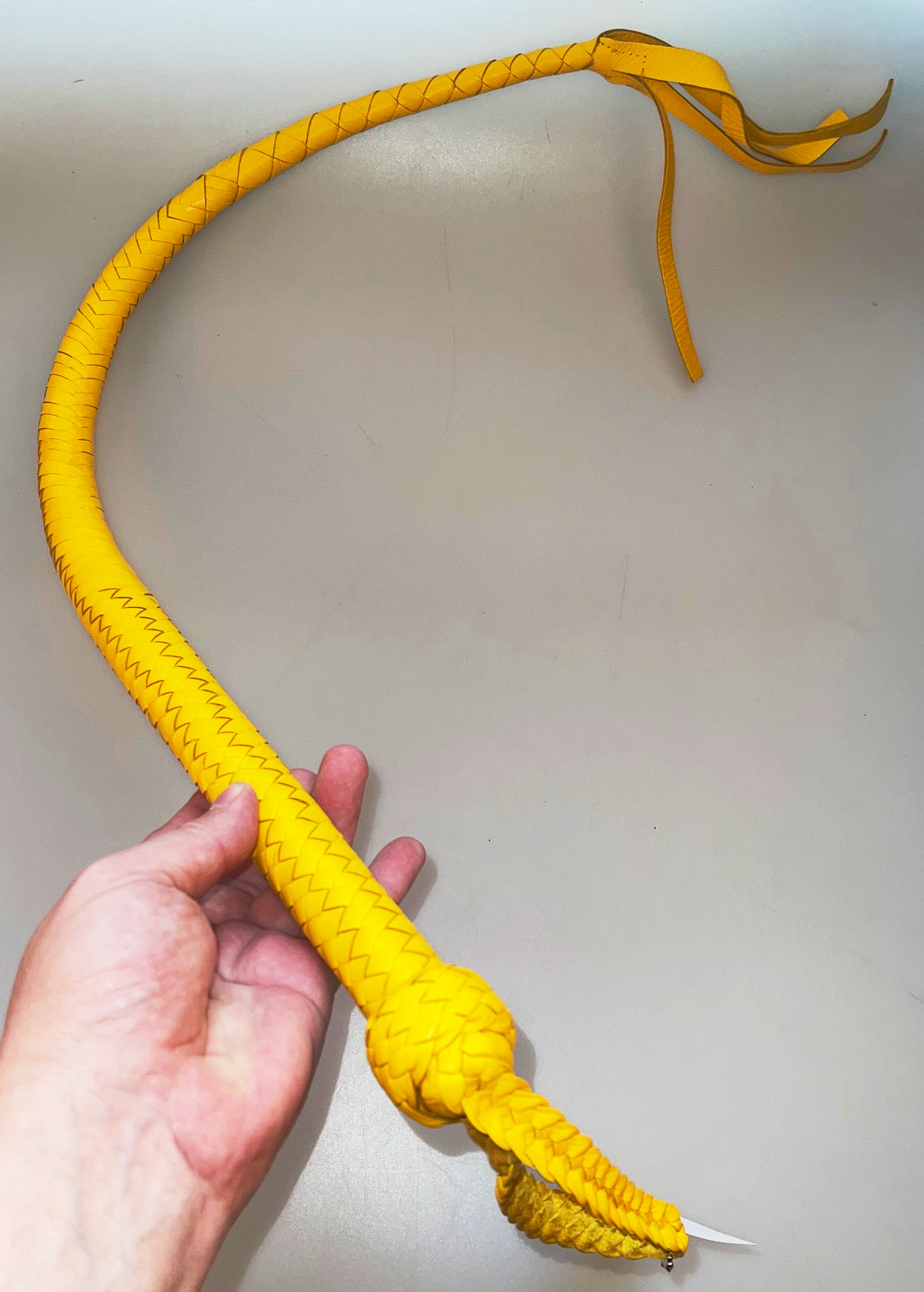 Bei Bedarf einfach ein paar kleine Knoten am Ende hinzufügen. Dies verschärft die Peitsche ungemein. :-)