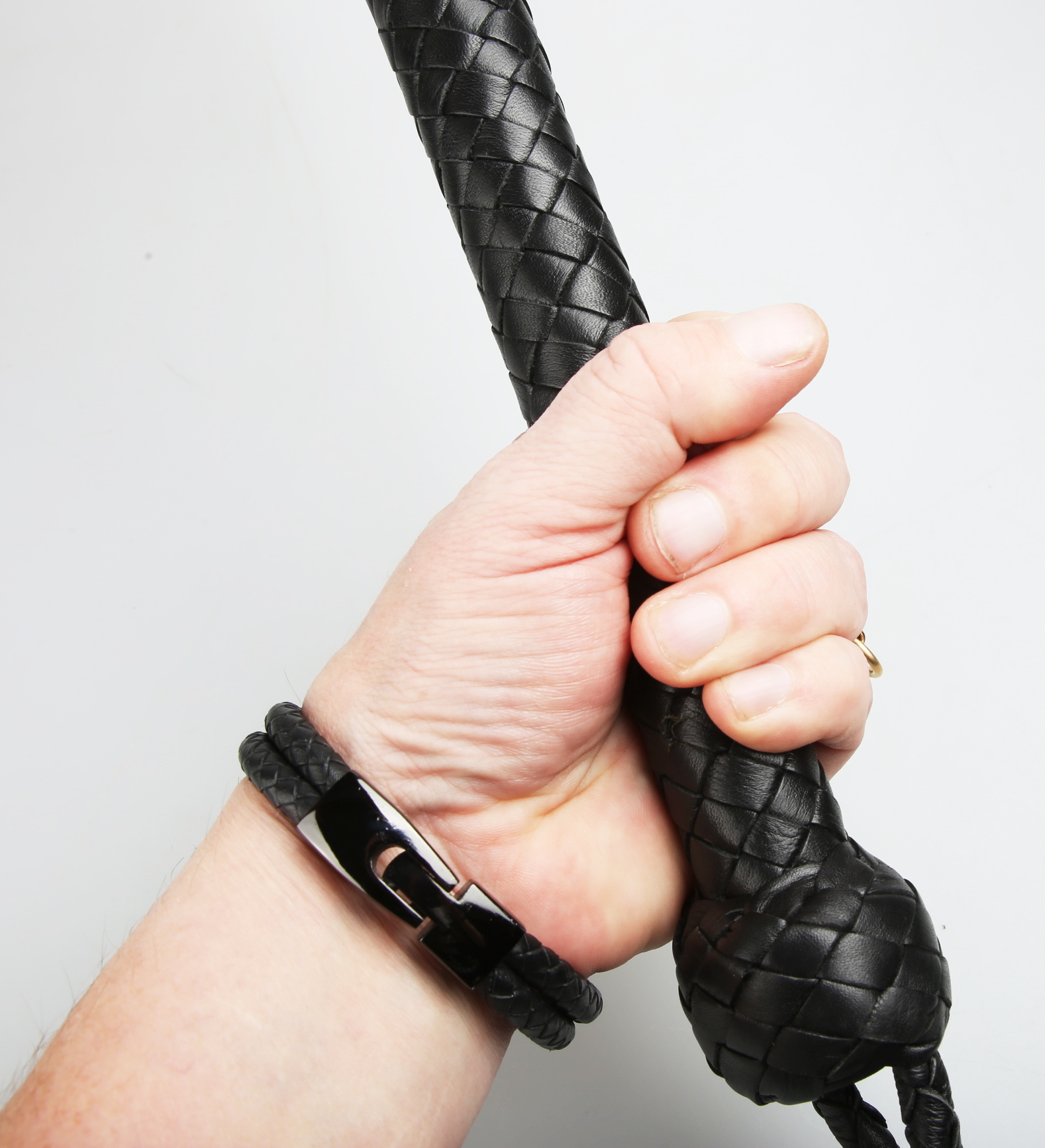 Lederpeitsche „Imperator“ – handgeflochten, 155 cm schwarz