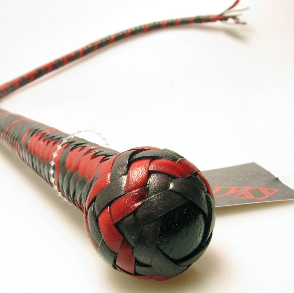 Kavaleriepeitsche aus Rindsleder - rot/schwarz 90cm