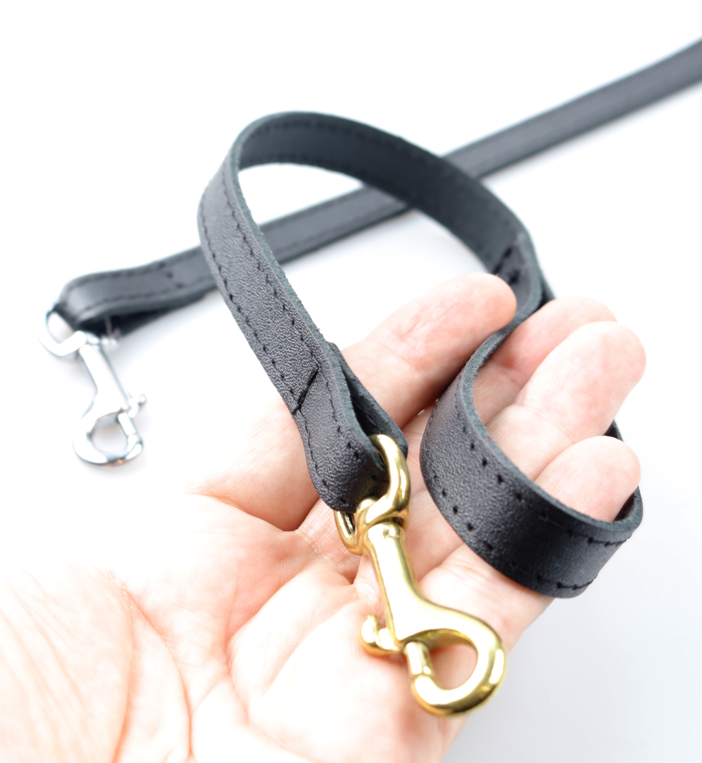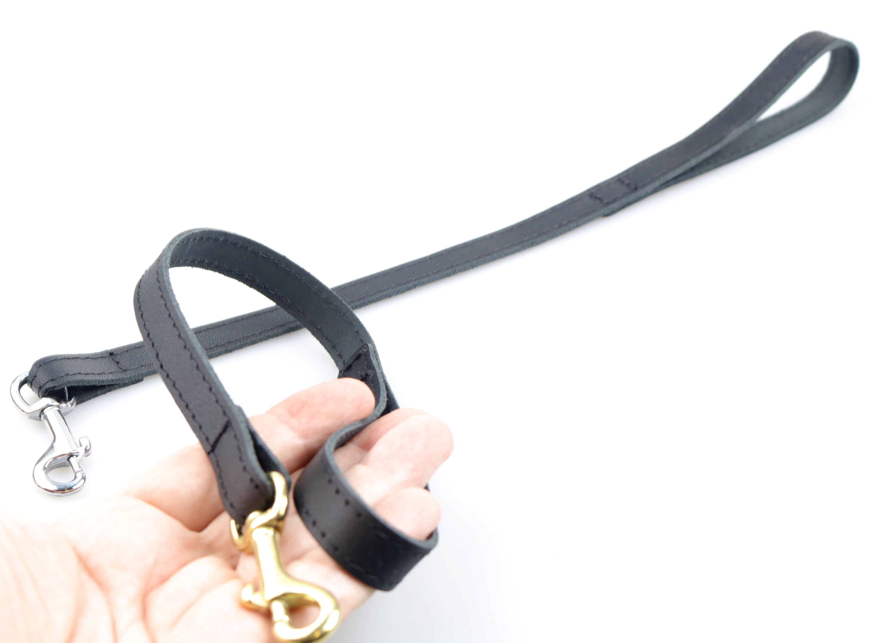 Soft Leder Leine mit Kette Schwarz - Führleine Exquisit