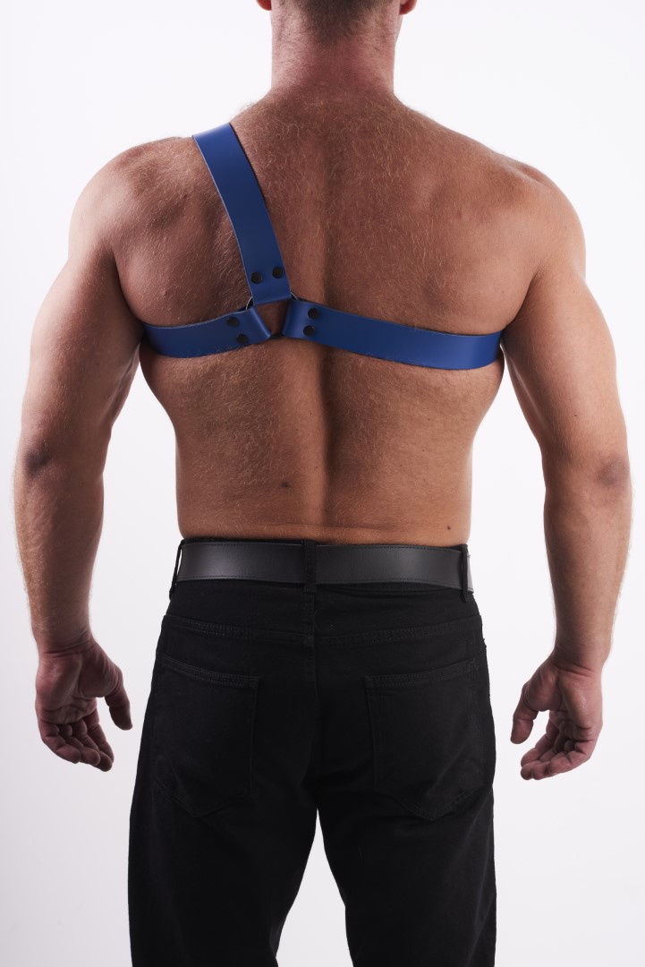 HighQuality - Soft Leder Brust Harness Y Schwarz/Blau