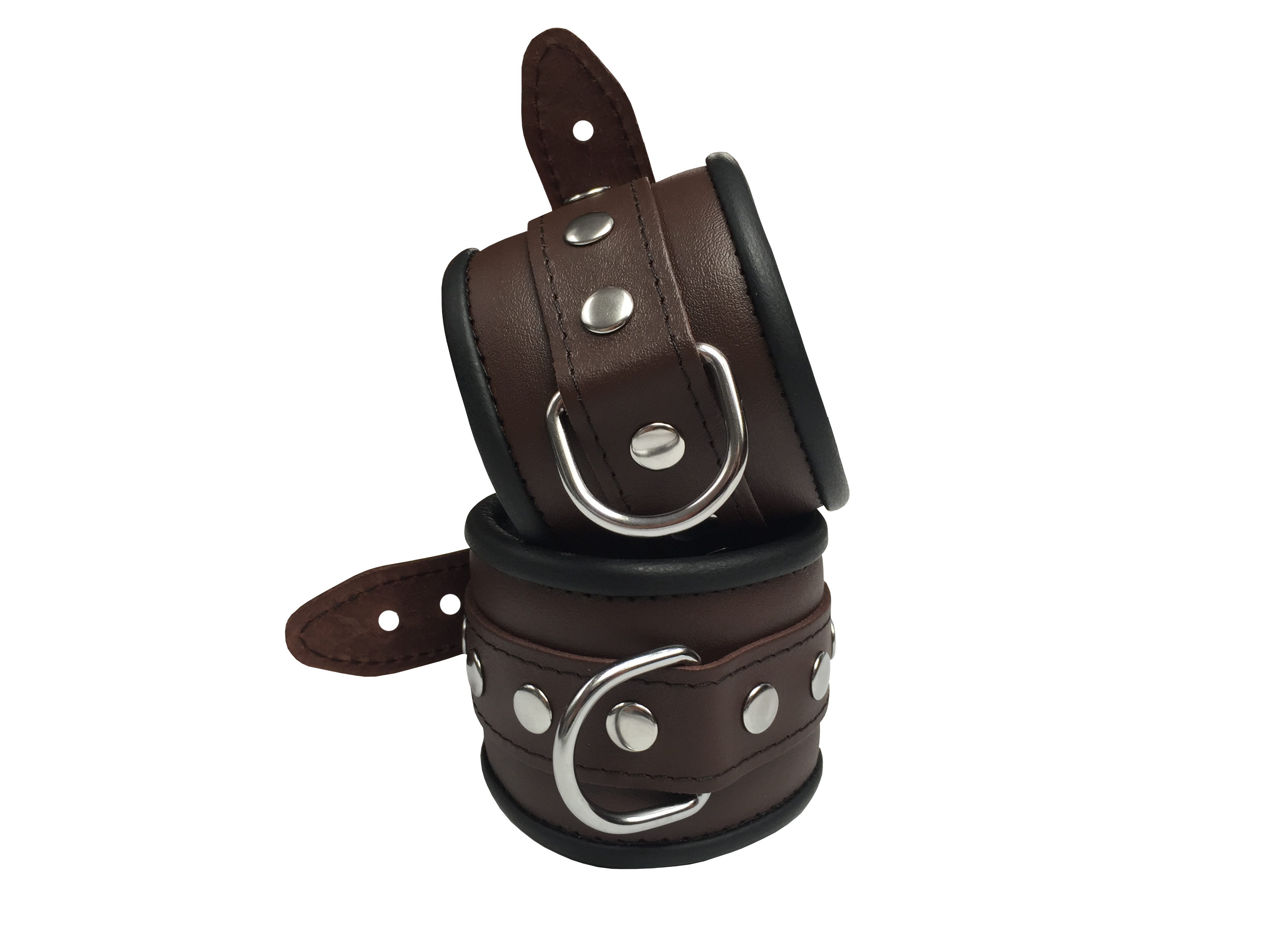 Leder Fesselset braun ca. 6 cm breit, mit abgerundeten Kanten, gepolstert.