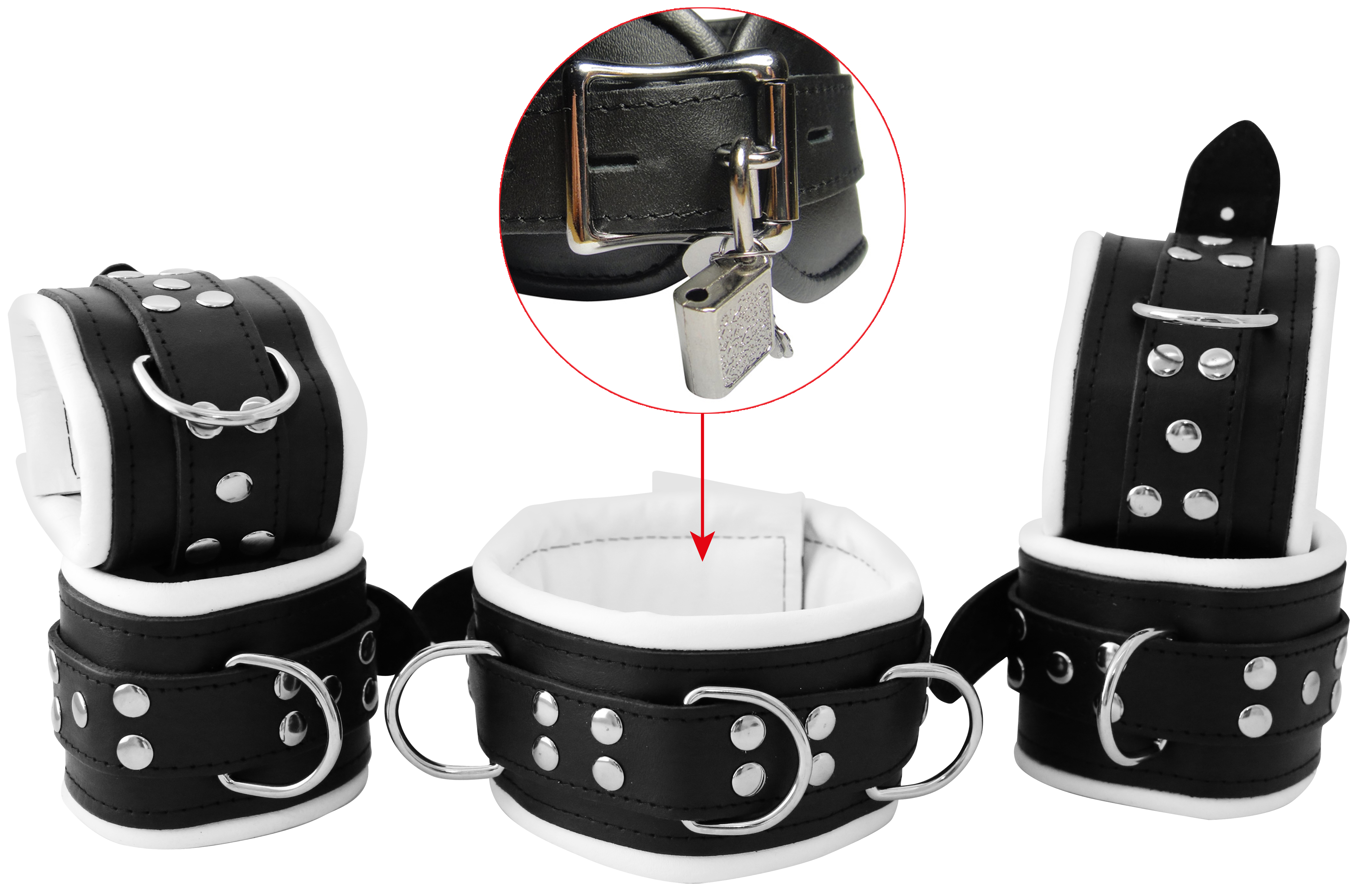 Leder Fesselset Weiss abschließbar Breit