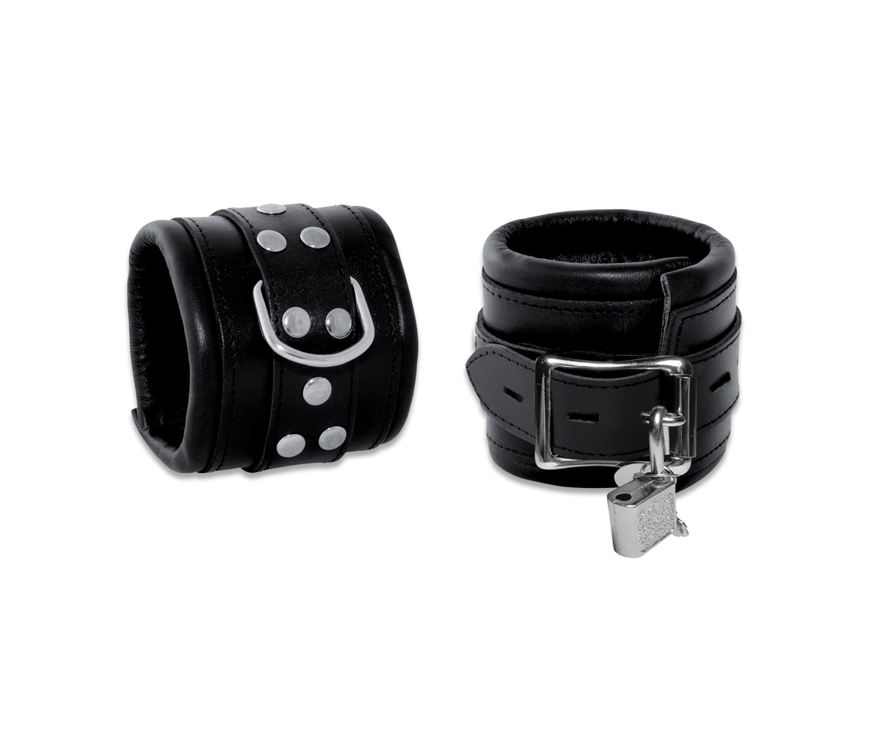 Edelstahl Fesselset mit Lederfutter,abschließbar - lockable stainless steel cuffset