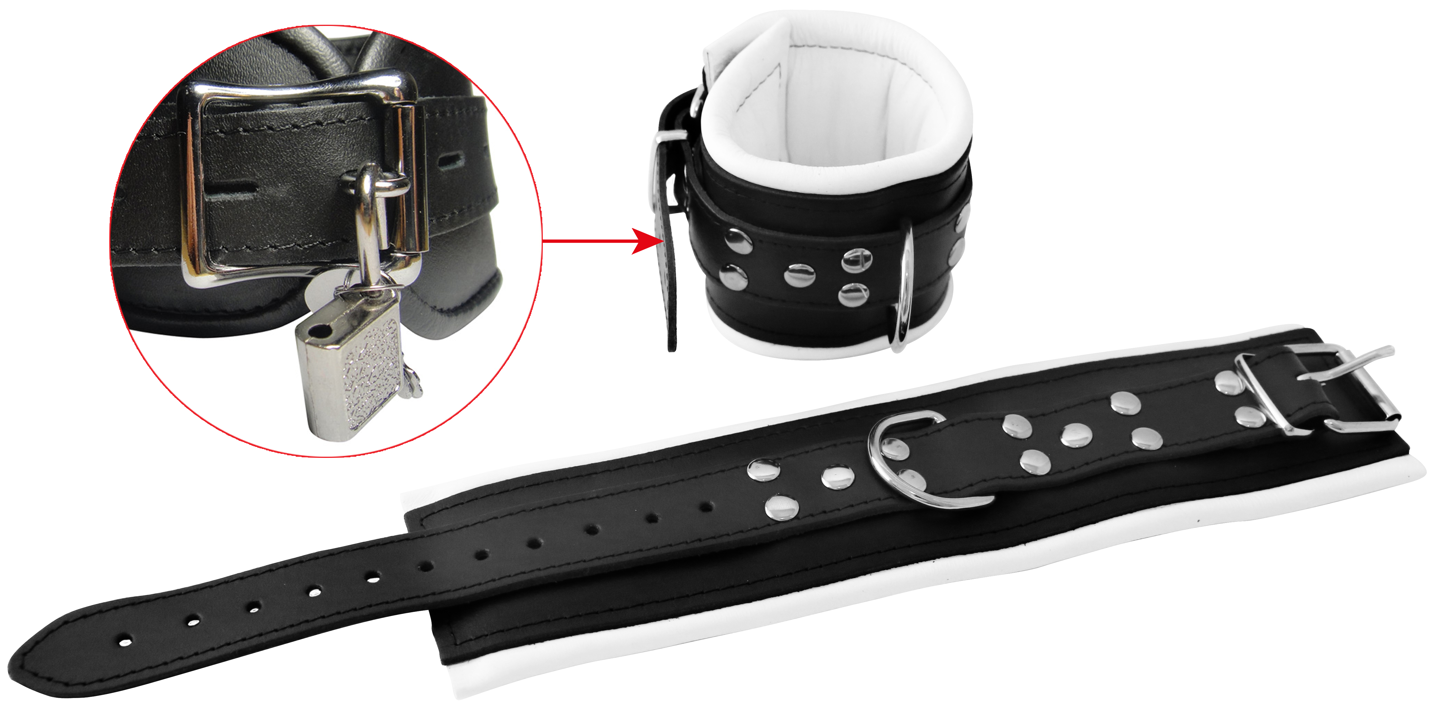 Leder Fußfessel weiß ca. 8 cm breit gepolstert abschließbar.
