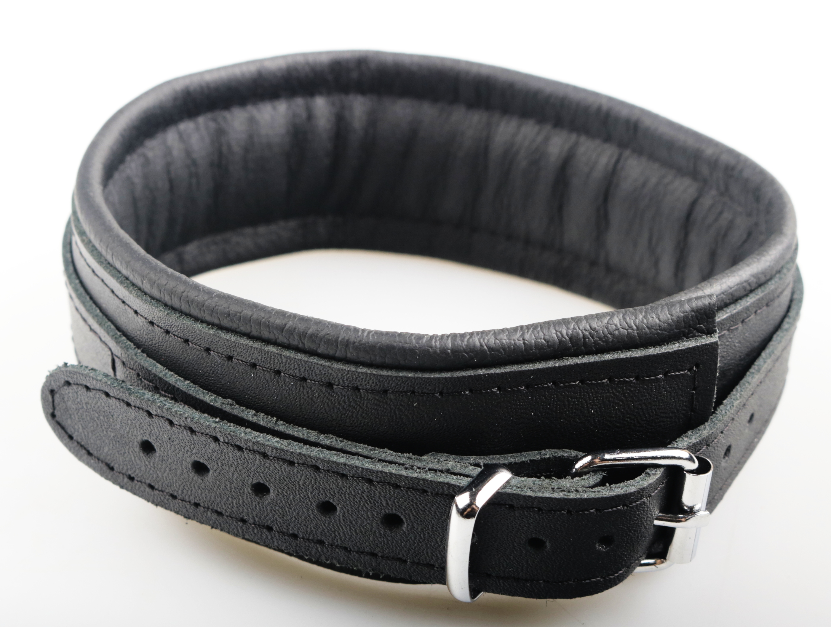 Leder Halsfessel schwarz ca. 5 cm breit gepolstert.
