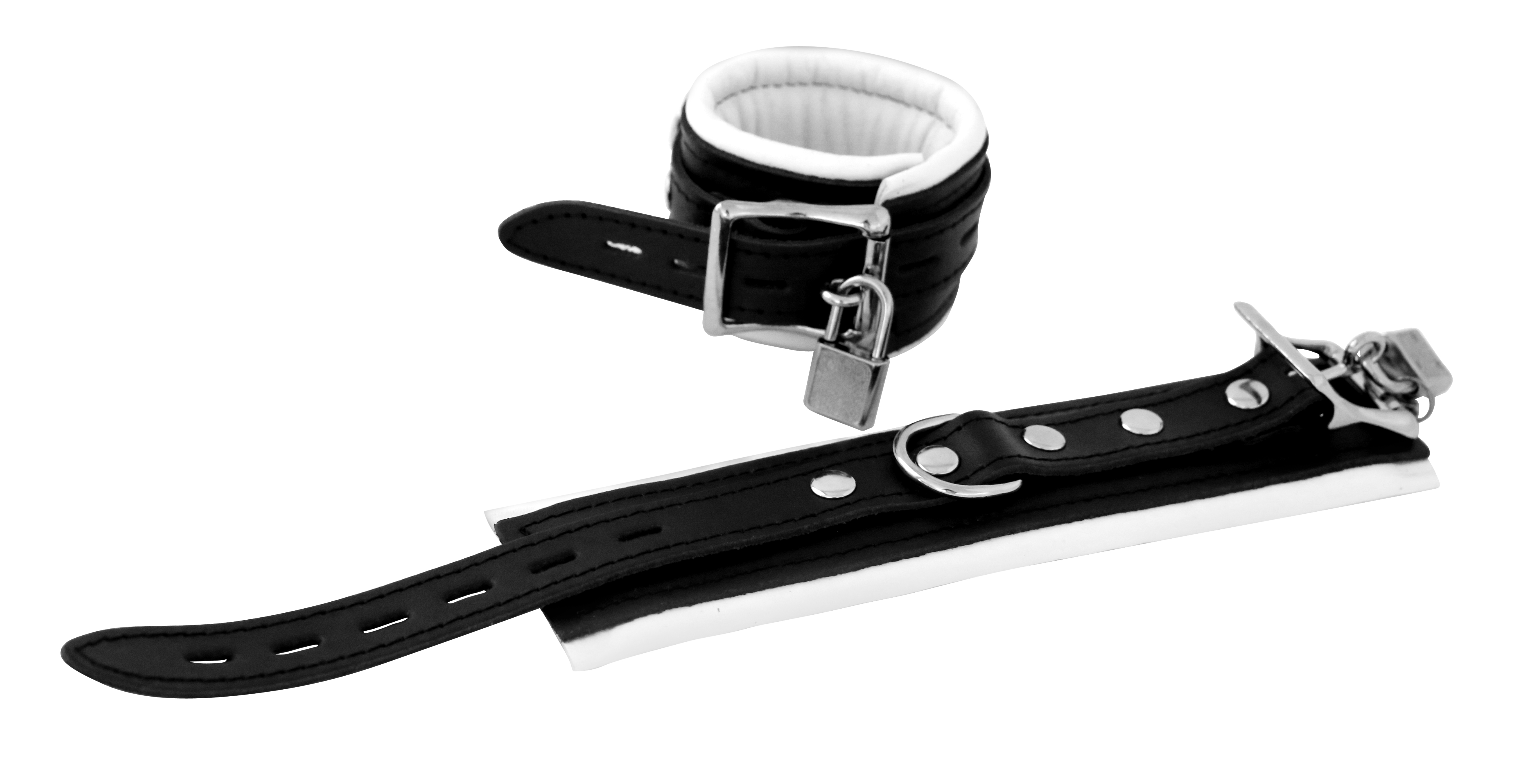 Leder Handfessel weiß ca. 5 cm breit gepolstert abschließbar.