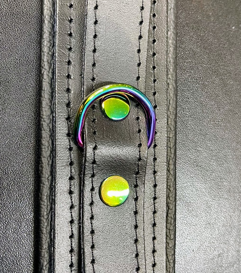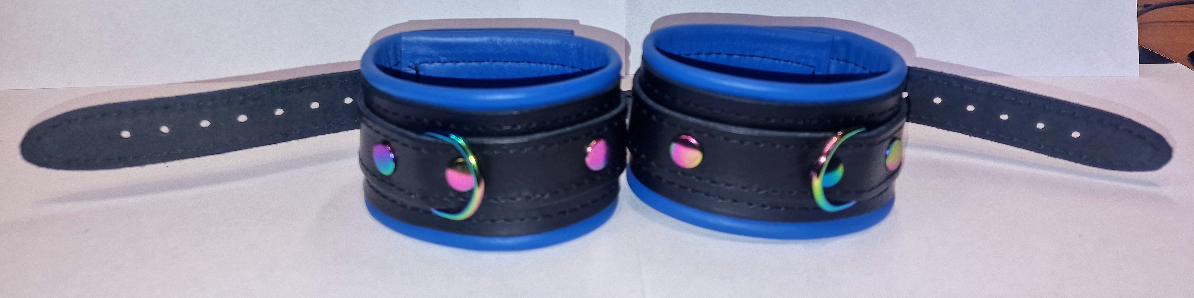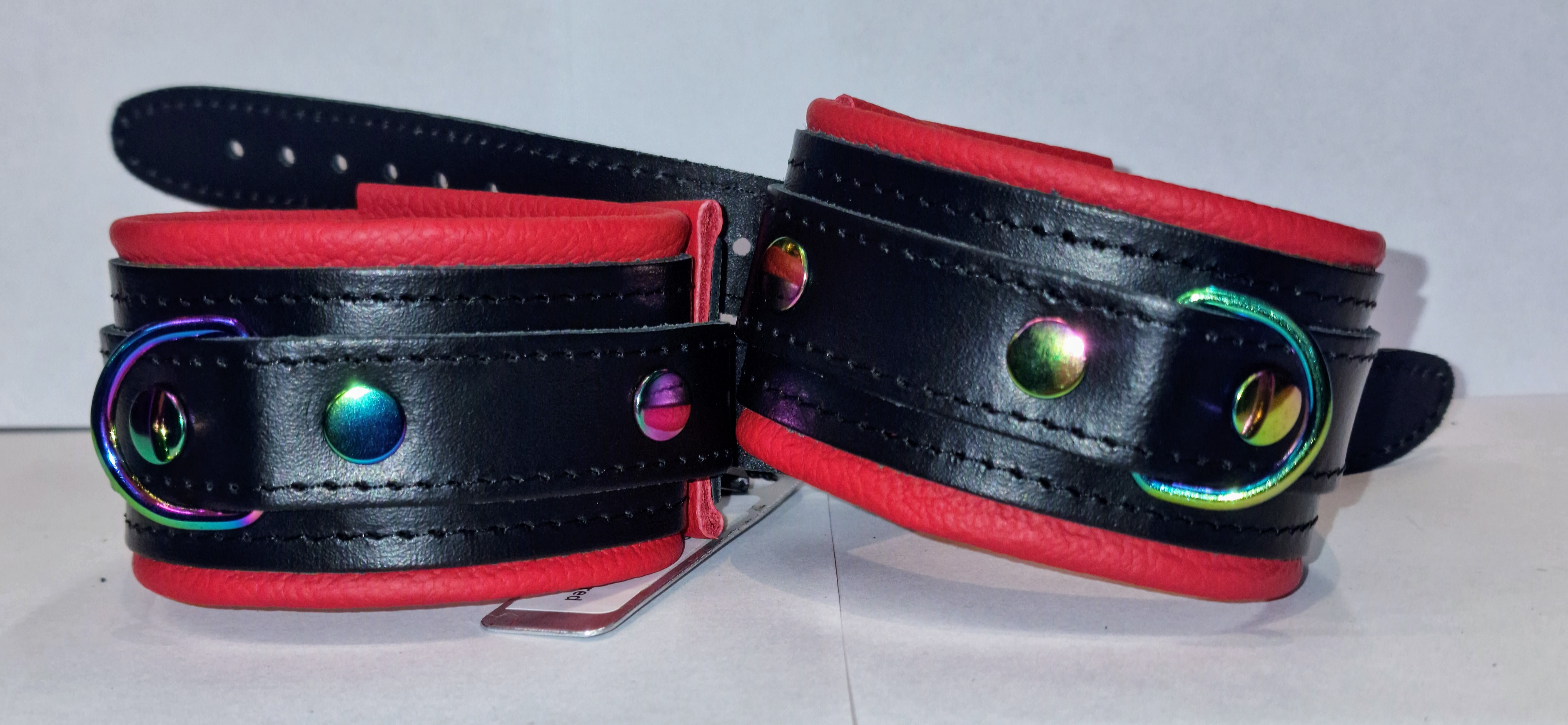 Die einzigartigen Regenbogen-/Holo-Metallelemente verleihen den Handfesseln einen modernen und luxuriösen Look. Passend zu Ihrem Stil können Sie zwischen den Farben Schwarz, Lila, Rot oder Blau wählen – für einen individuellen und stilvollen Auftritt.
