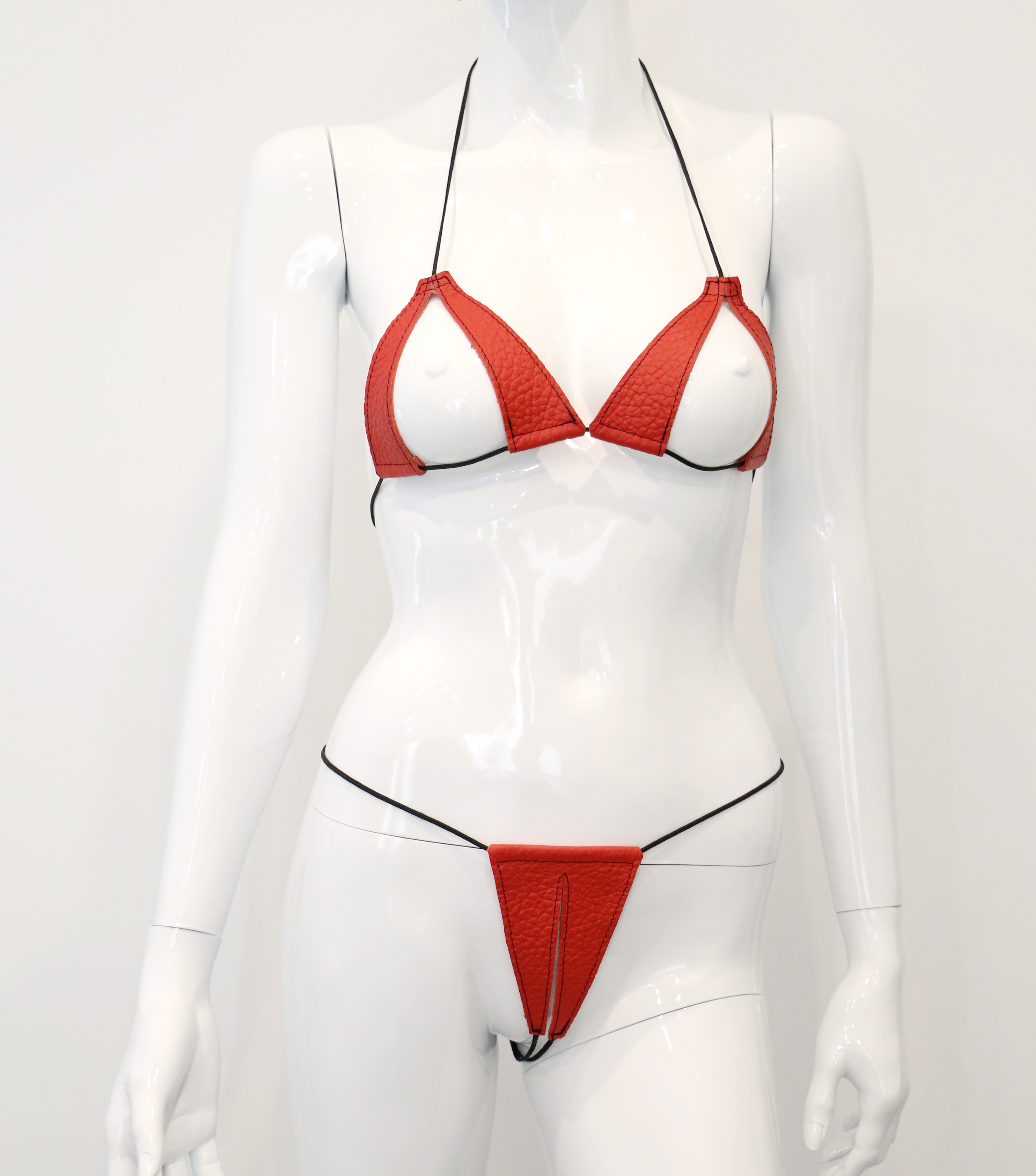 Bikini mit Schlitzen aus weichem Leder