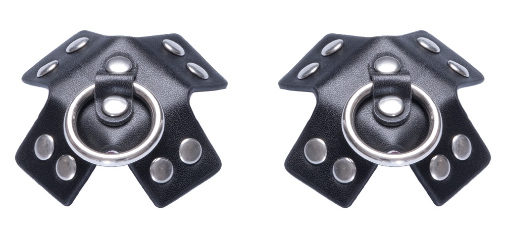 Markante X-Akzente! Nipple Sticker SM von Cottelli ACCESSOIRES als klassisches schwarzes Kreuz aus stilvollem Lederimitat mit Nietenbesatz und (Fessel-) Ring.