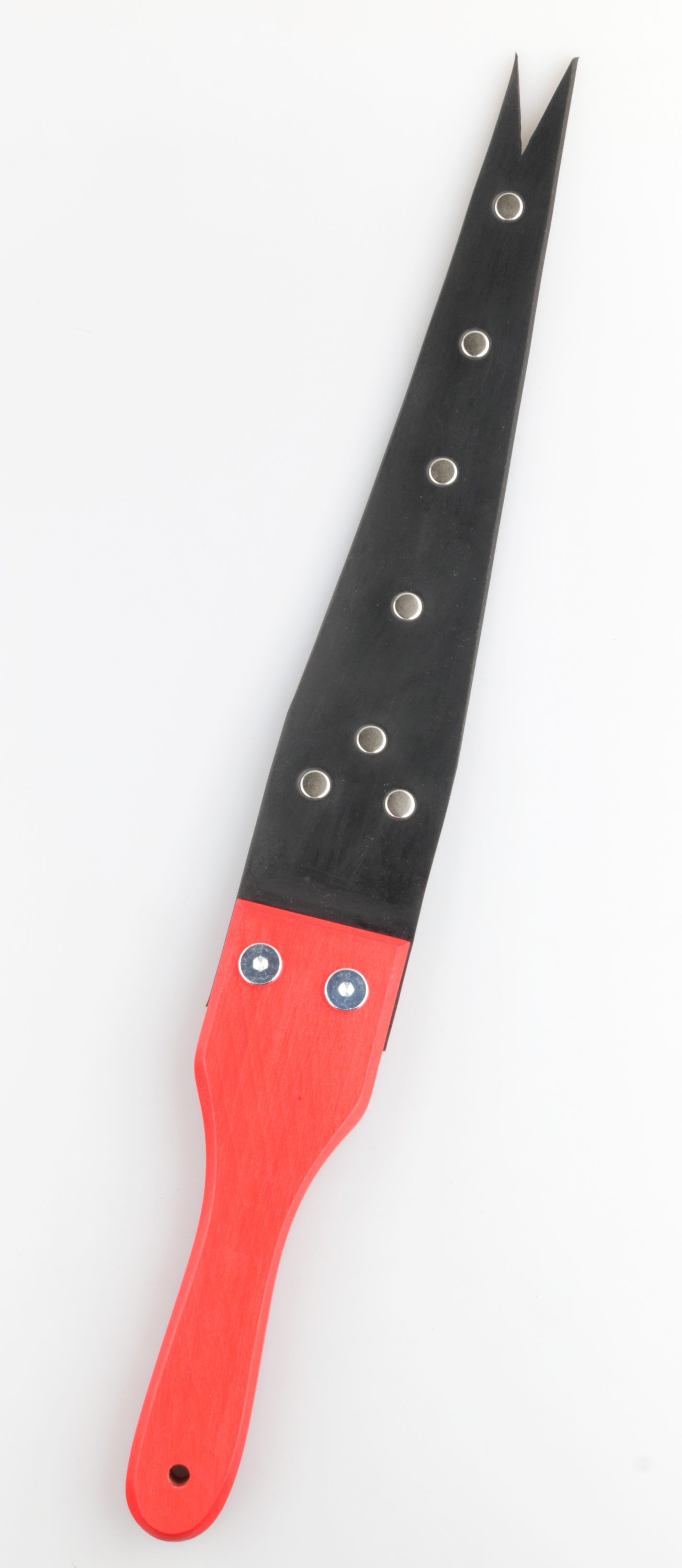 - von ca. 6cm auf 2,5cm verjüngendes breites Gummi-Paddle, 6mm dick