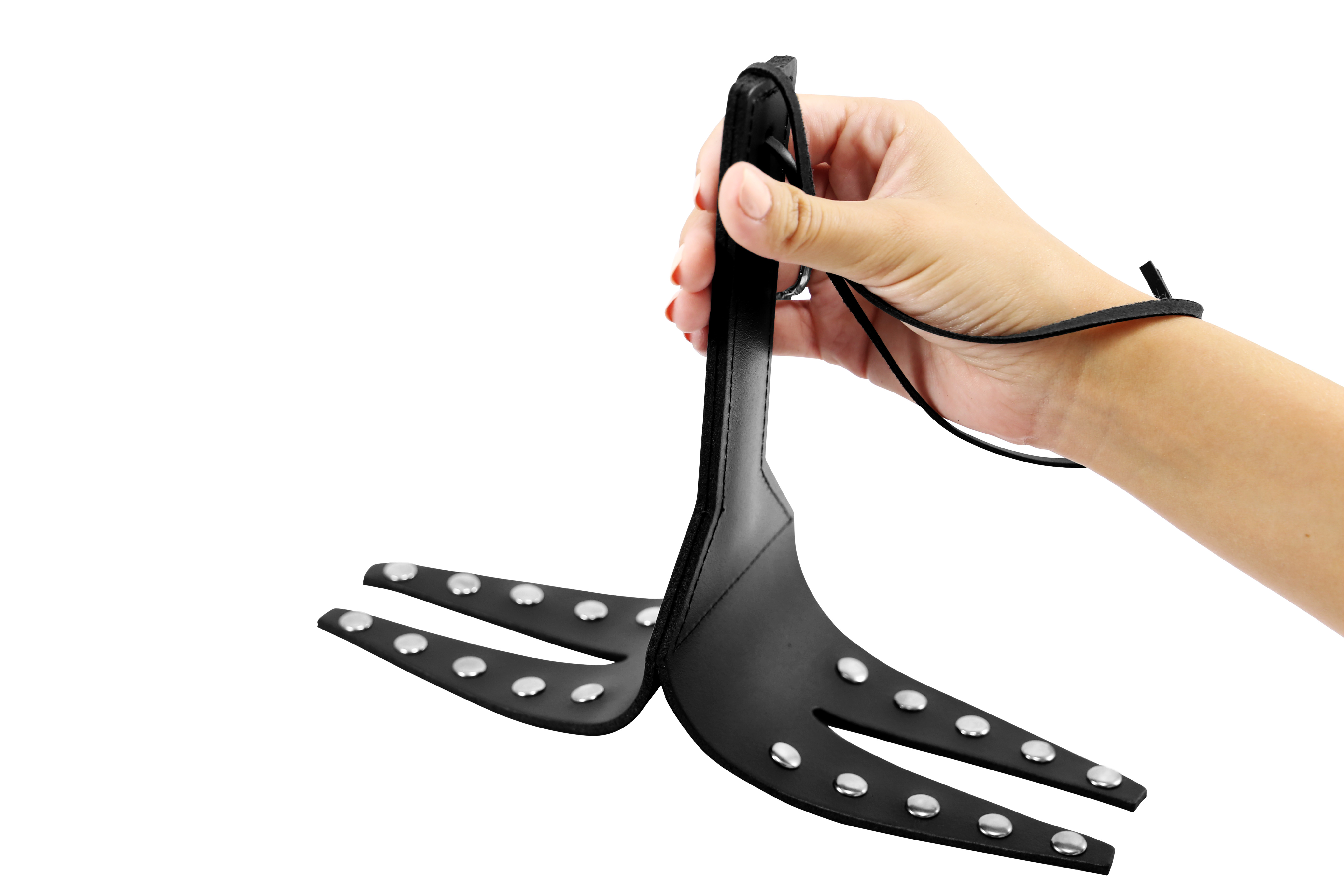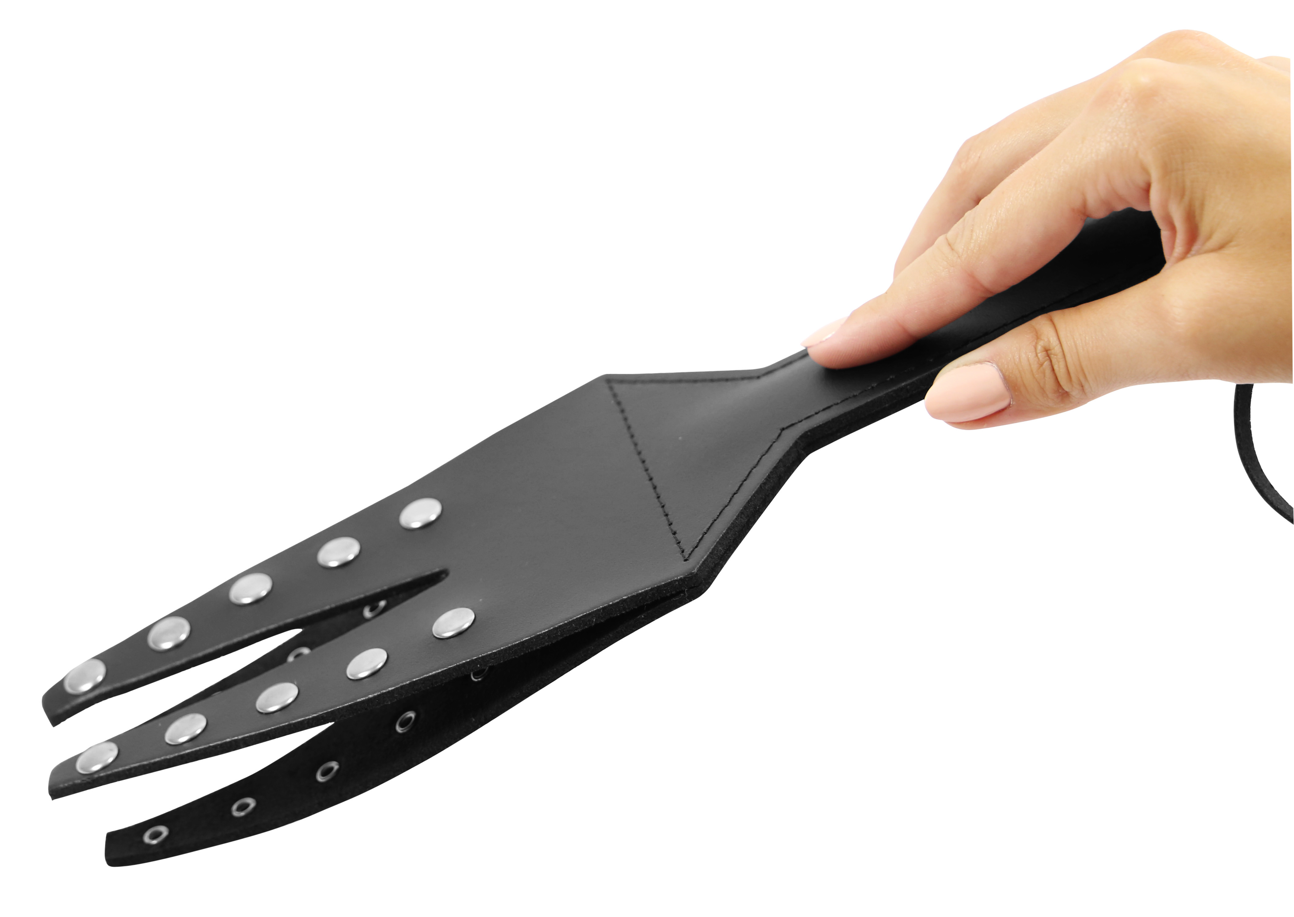 | Doppelpaddel aus Leder und kleiner Lederschlaufe |