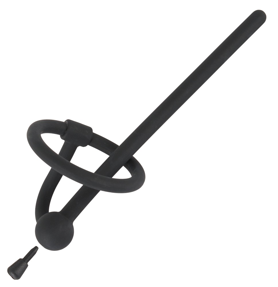Hohler Penisplug mit beweglichem Eichelring und herausnehmbarem Stopper.