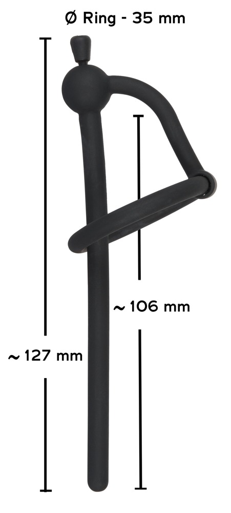 Gesamtlänge 12,7 cm. Einführtiefe 10,6 cm. Ø 0,6 cm. Ring-Ø 3,5 cm. Gewicht 9 g. Silikon, PU.
