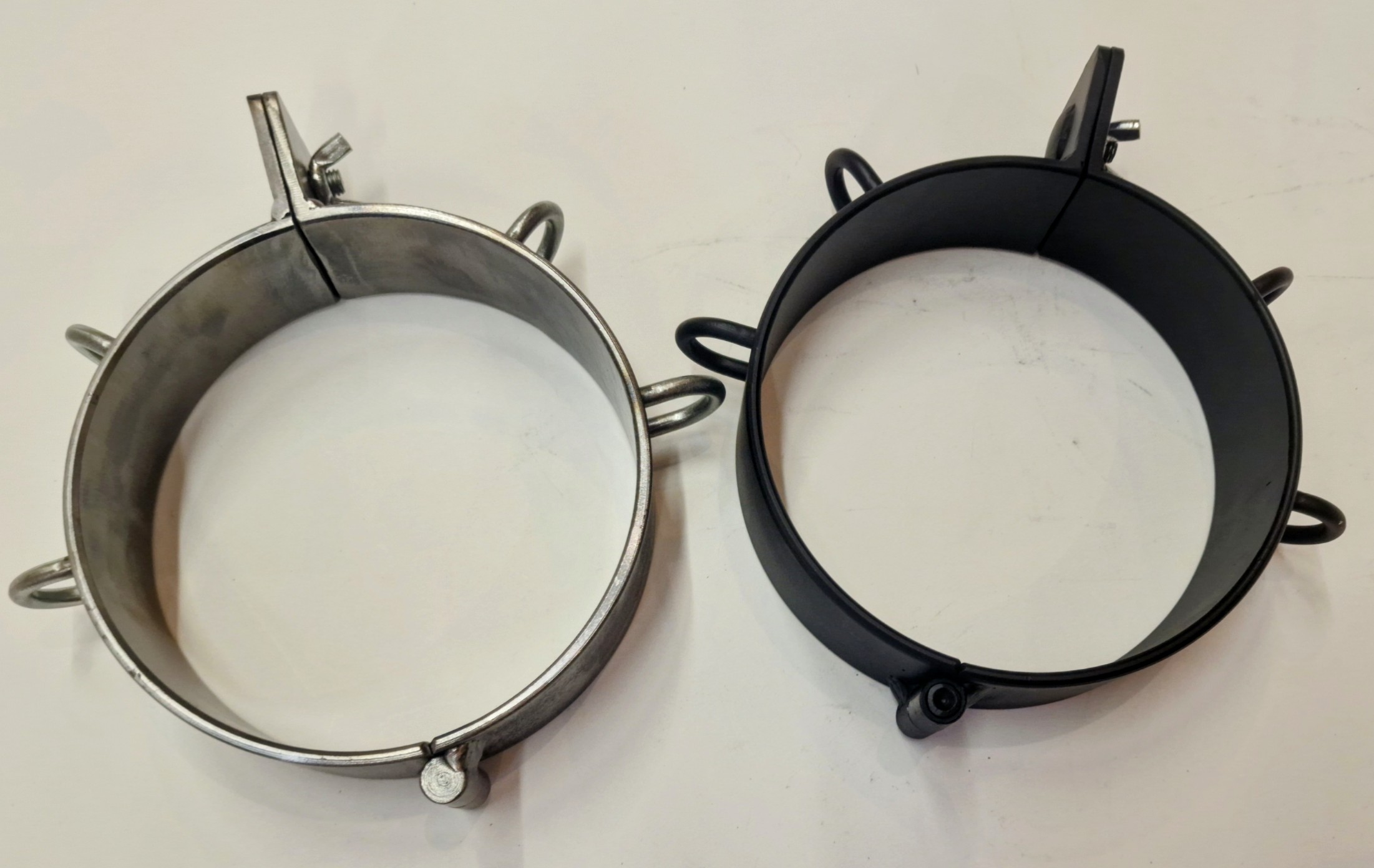 Durchmesser 15cm, 5cm breit, 4mm dick, 4 Oesen, auch andere Maße lieferbar.