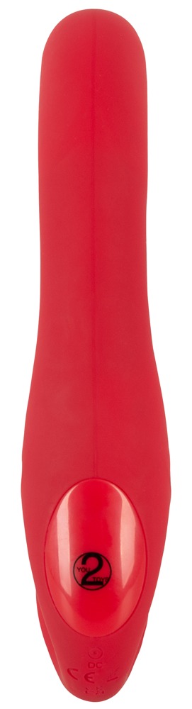 Gurtloser RC Strapless Strap-On 3 von You2Toys mit flexiblem Doppelvibrator. Der kurze, ausgeprägt gewellte Vibrator wird in die Vagina eingeführt und durch die vaginale Muskulatur gehalten. So ausgestattet kann jetzt der/die Partner:in mit dem längeren, reizstrukturierten Vibrator verwöhnt werden.