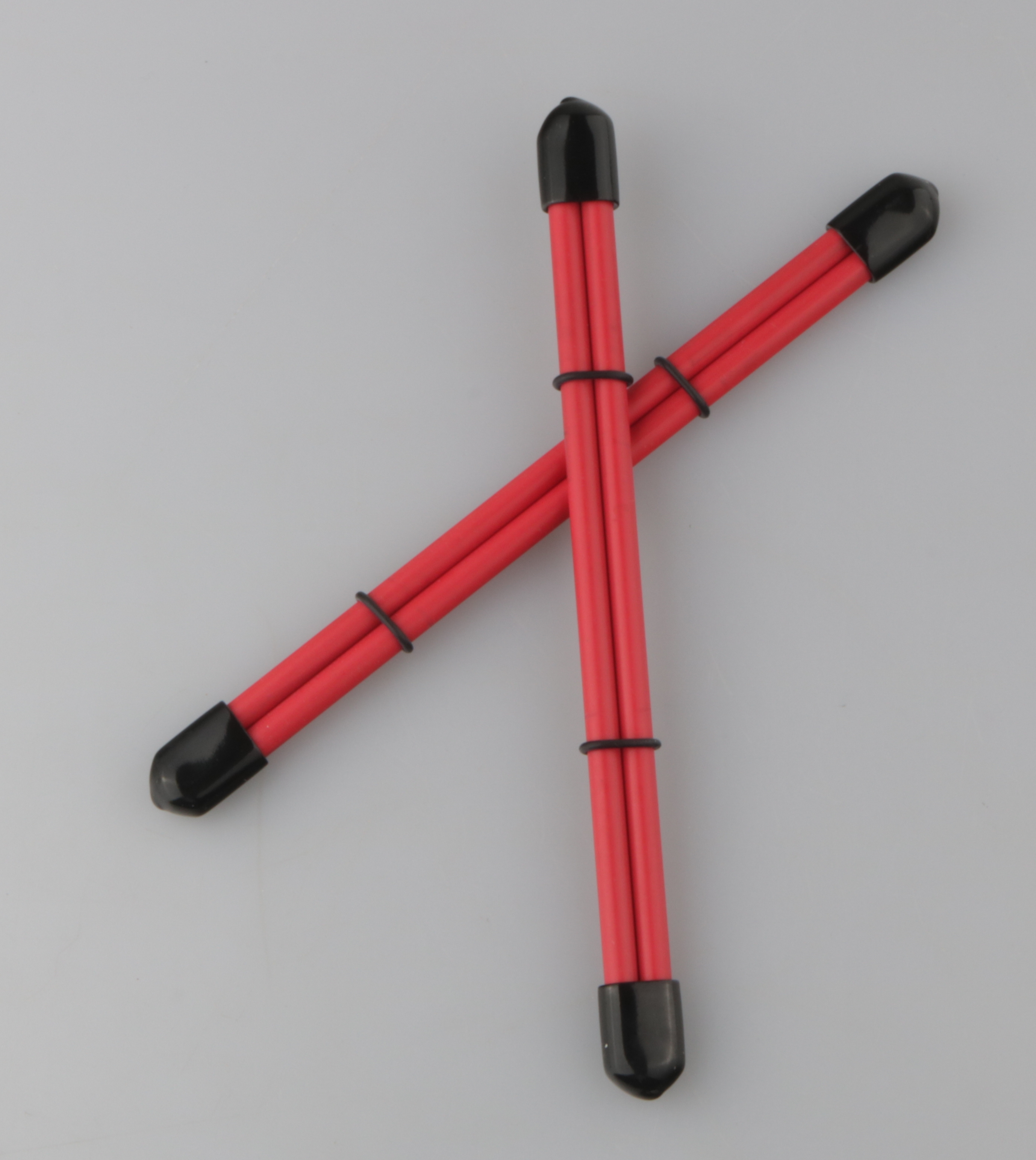 Mit Gummiendkappen und Gummiringen. Mit den Ringen wird die Intenssität reguliert.