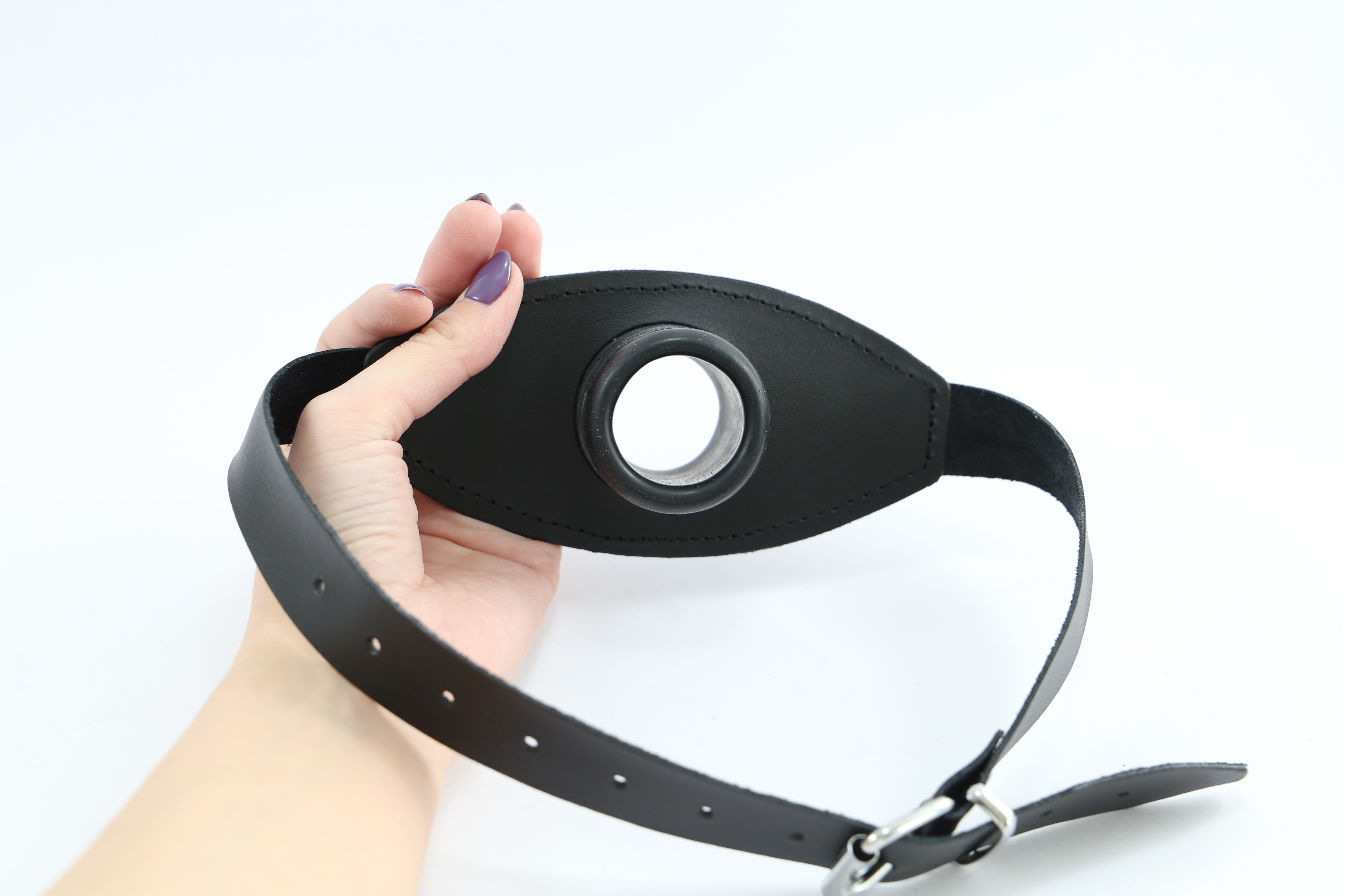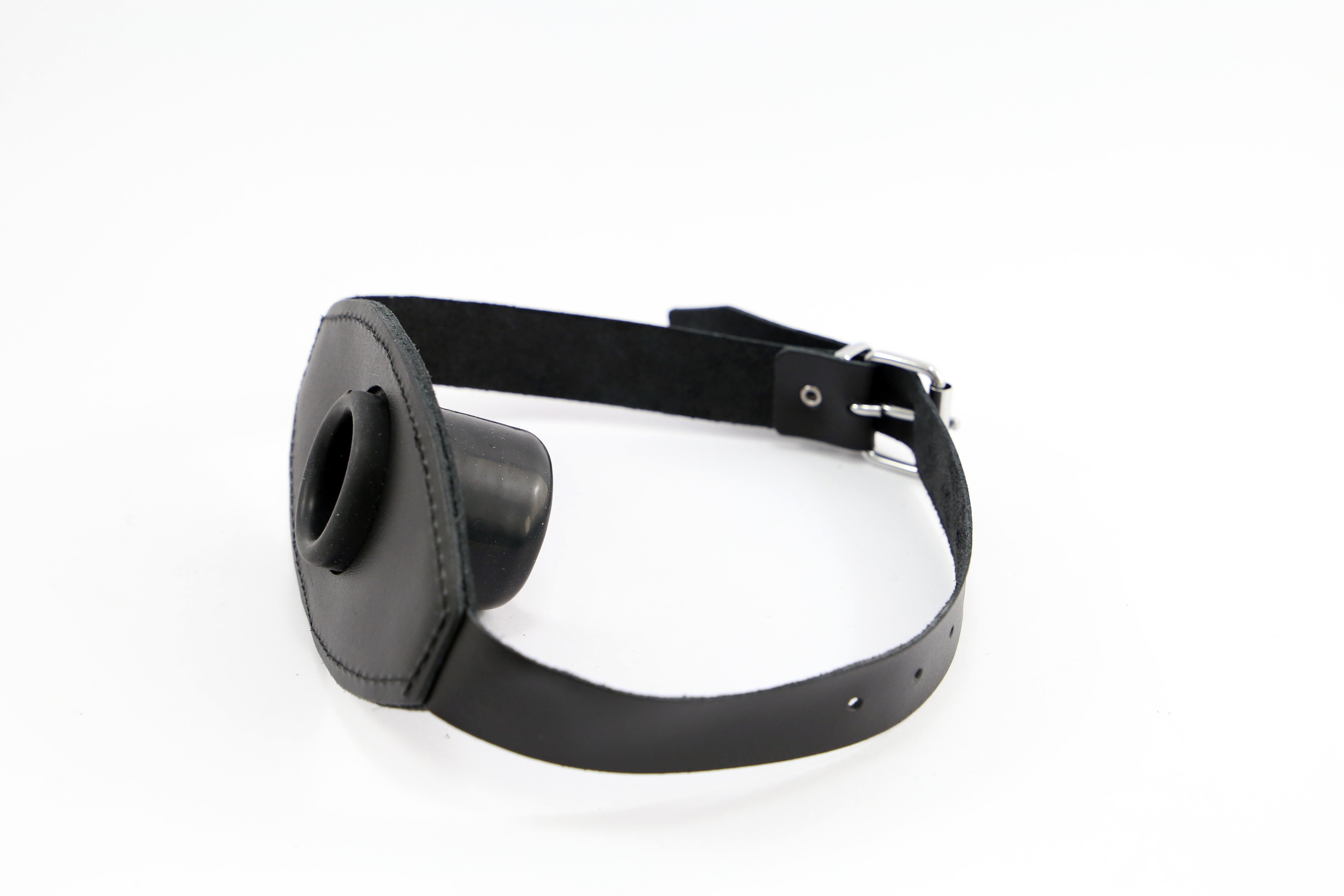 Mundeknebel aus Leder und integriertem Latex Rohr.
