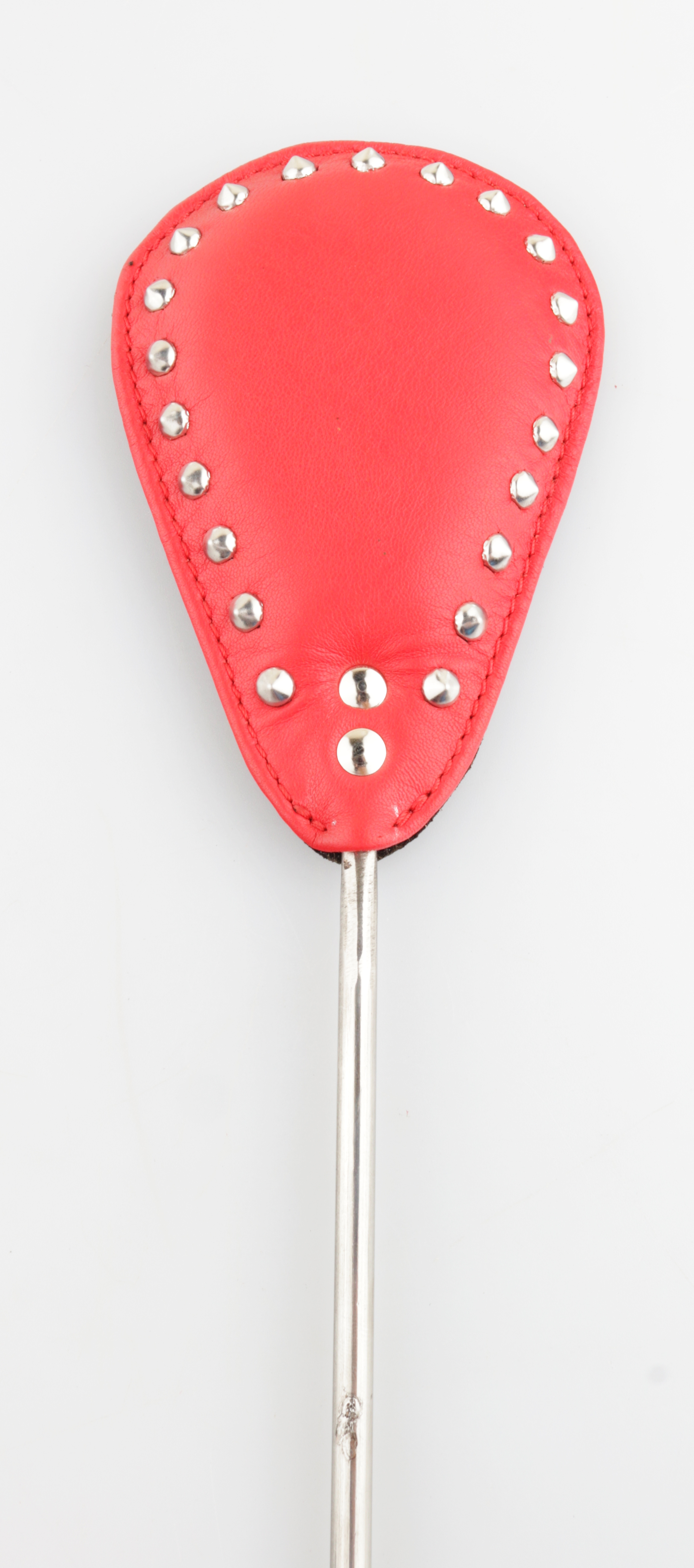 Stahlgerte mit stylischer Nieten-Lederklatsche rot