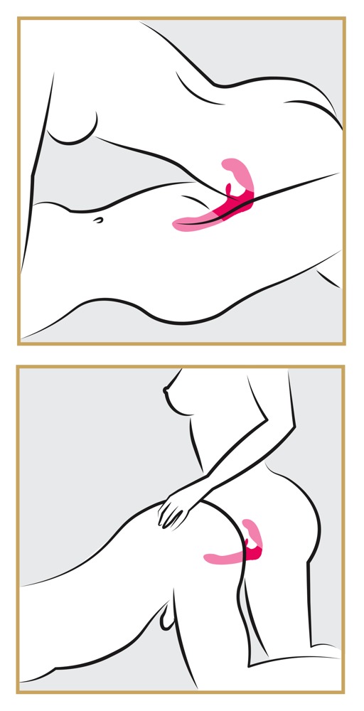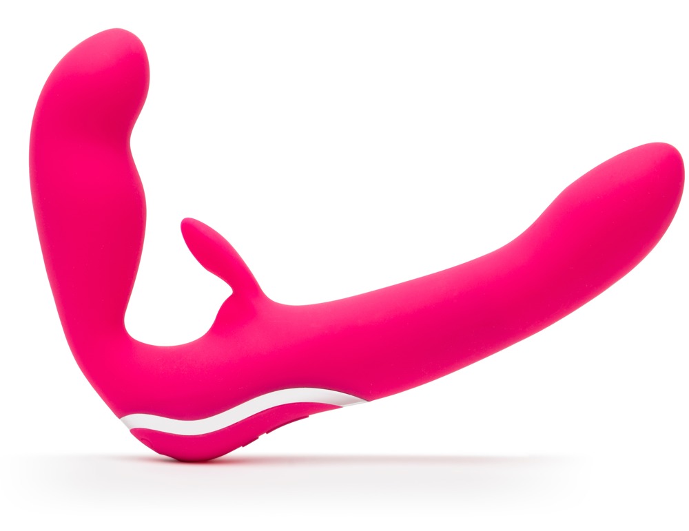 Seidig zarter Strapless Strap-On von happyrabbit mit Doppelvibrator und zusätzlichem Klitorisreizer. Das gurtlose Toy wird durch die Beckenbodenmuskulatur gehalten. Dafür wird der kleine Vibrator in die Vagina eingeführt und der große Vibrator kann dann zum Pegging genutzt werden. Mit 12 Vibrationsmodi im großen und 3 Geschwindigkeiten im kleinen Vibrator für ein abwechslungsreiches Liebesspiel. Der Strap-on ist außerdem angenehm biegsam und passt sich optimal der Anatomie an, indem es die gewünschte Position beibehält. Wiederaufladbar mit dem beiliegenden USB-Kabel. Wasserdicht und mit Tastensperre.
