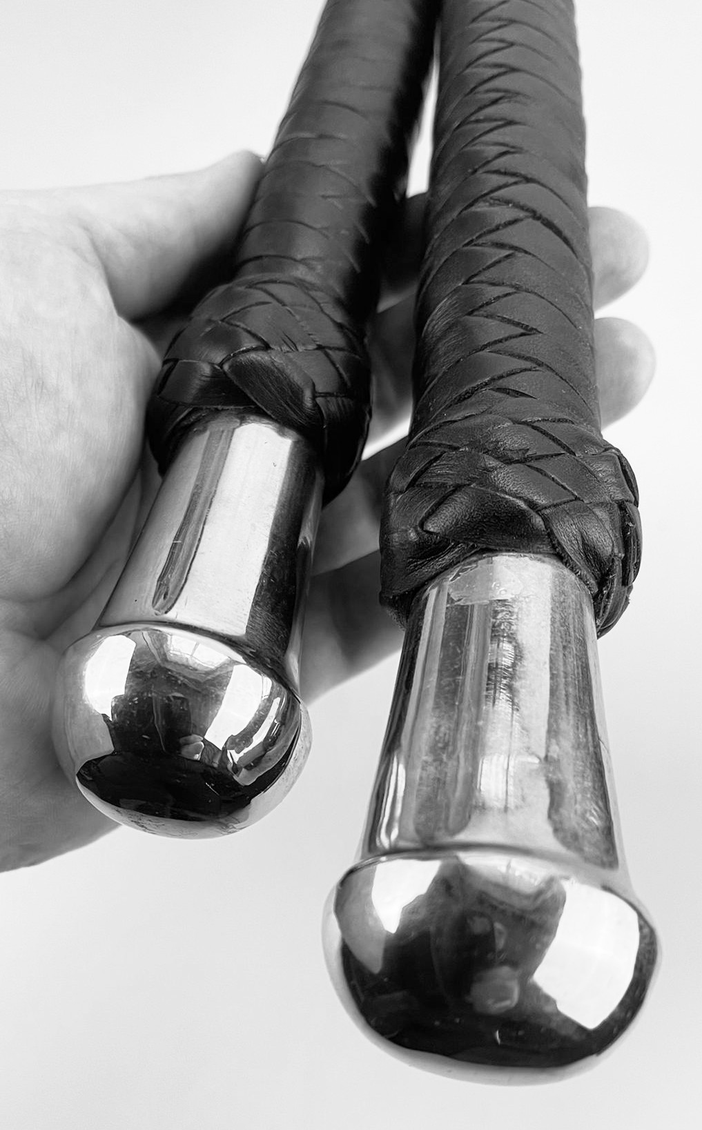 Schwarze SingleTail mit Silberknauf 78cm oder 93cm - Bitte auswählen